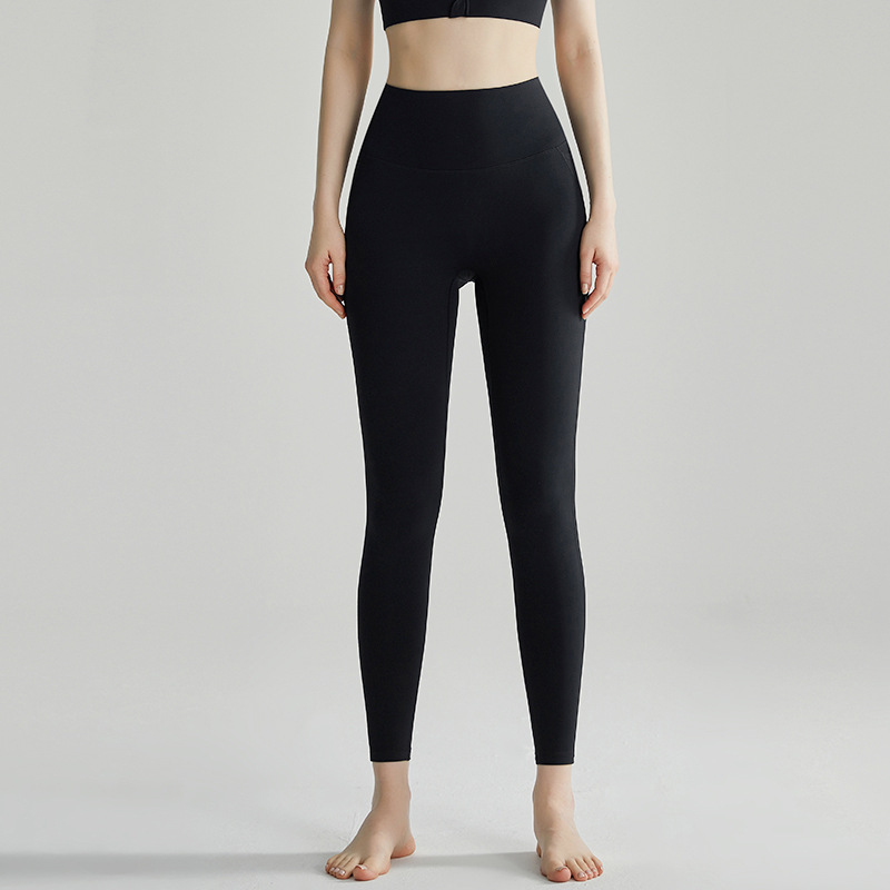 LAHN 누드 피부 친화적 인 스포츠 요가 바지 여성용 하이 웨이스트 엉덩이 리프팅 당황스러운 라인 없음 컬링 방지 얇은 피트니스 바지 여름