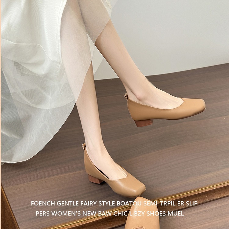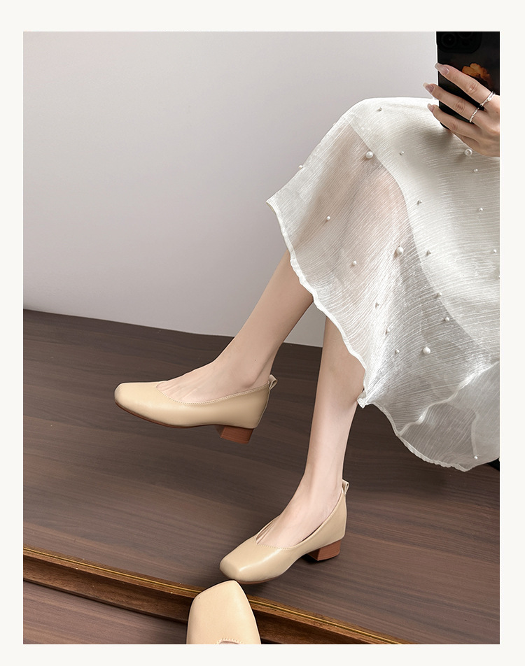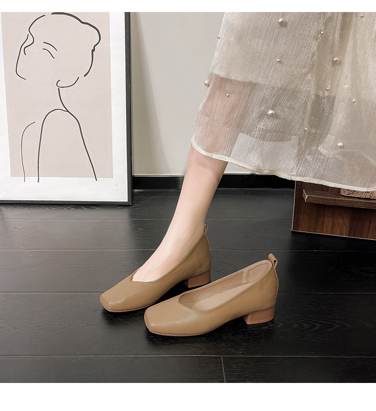 양가죽 소프트솔 슈즈, 여름용 빈티지 스타일, 프렌치 스퀘어토, 얕은 입구, 6cm 굽, 키높이 여성용 할머니 슈즈스토어 가기