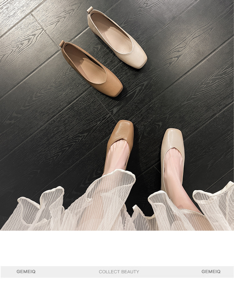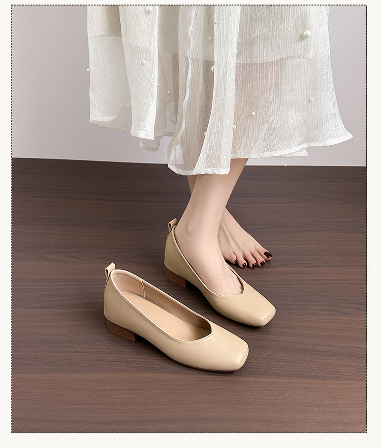 양가죽 소프트솔 슈즈, 여름용 빈티지 스타일, 프렌치 스퀘어토, 얕은 입구, 6cm 굽, 키높이 여성용 할머니 슈즈