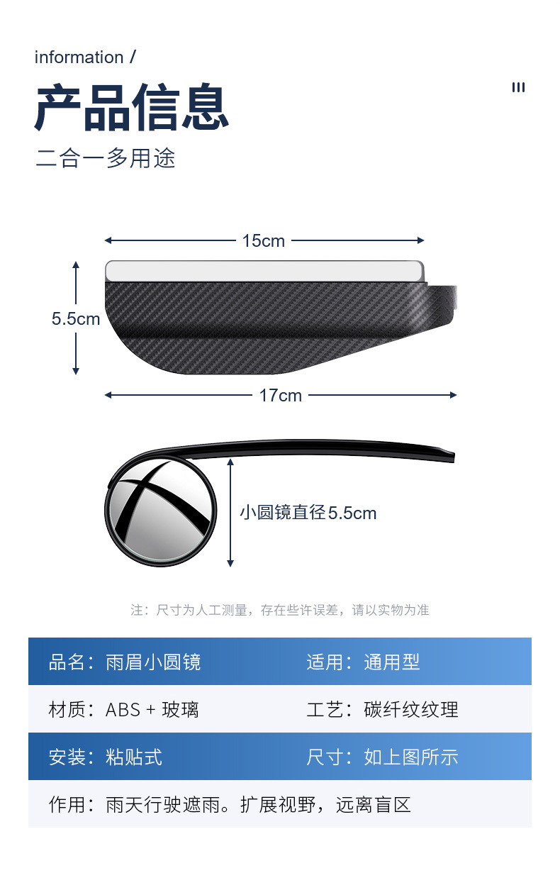 자동차 백미러 비 눈썹 탄소 섬유 2 대 1 작은 원형 거울 비 방패 반전 유물 사각 지대 보조 거울스토어 가기