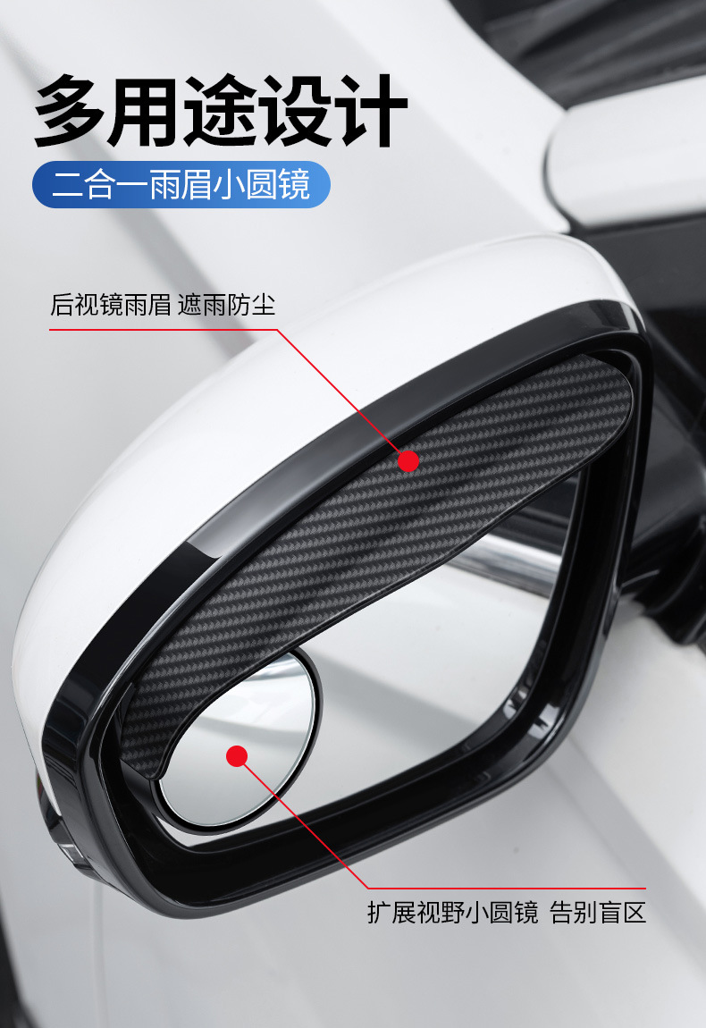 자동차 백미러 비 눈썹 탄소 섬유 2 대 1 작은 원형 거울 비 방패 반전 유물 사각 지대 보조 거울