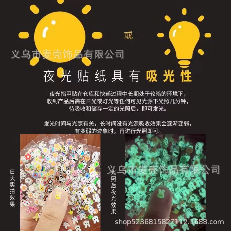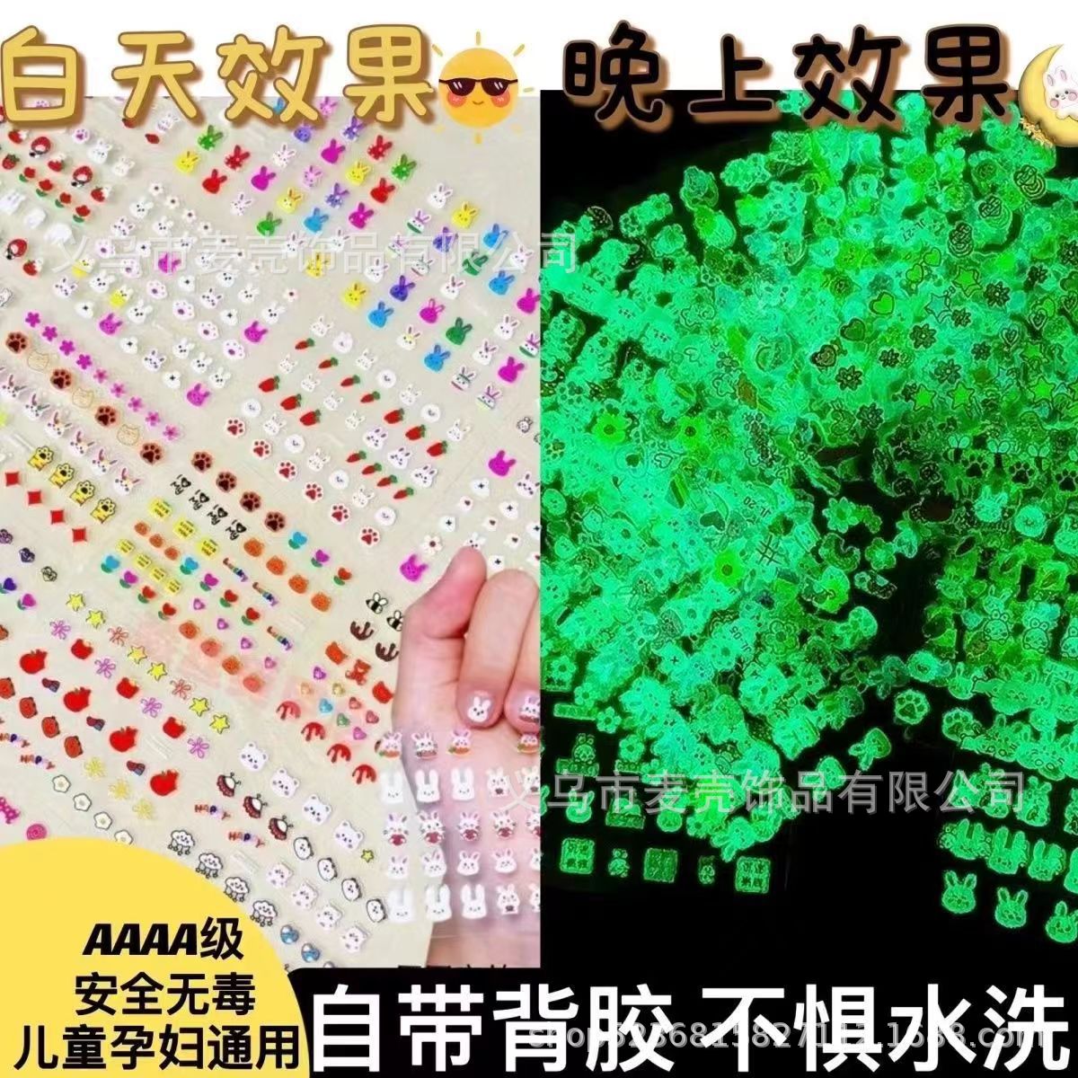 어린이 빛나는 네일 스티커 만화 토끼 데칼 공주 아기 유치원 보상 스티커 장난감 네일 스티커스토어 가기