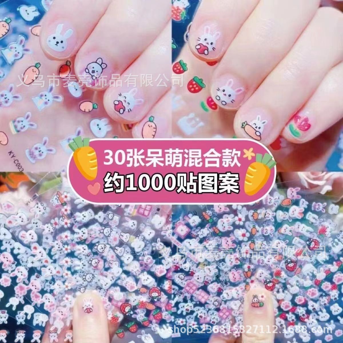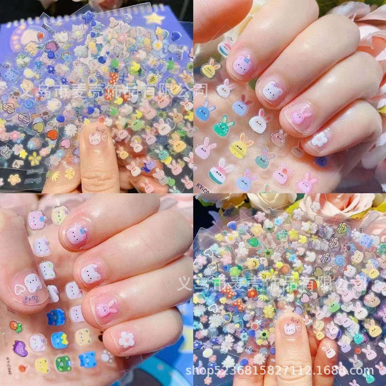 어린이 빛나는 네일 스티커 만화 토끼 데칼 공주 아기 유치원 보상 스티커 장난감 네일 스티커
