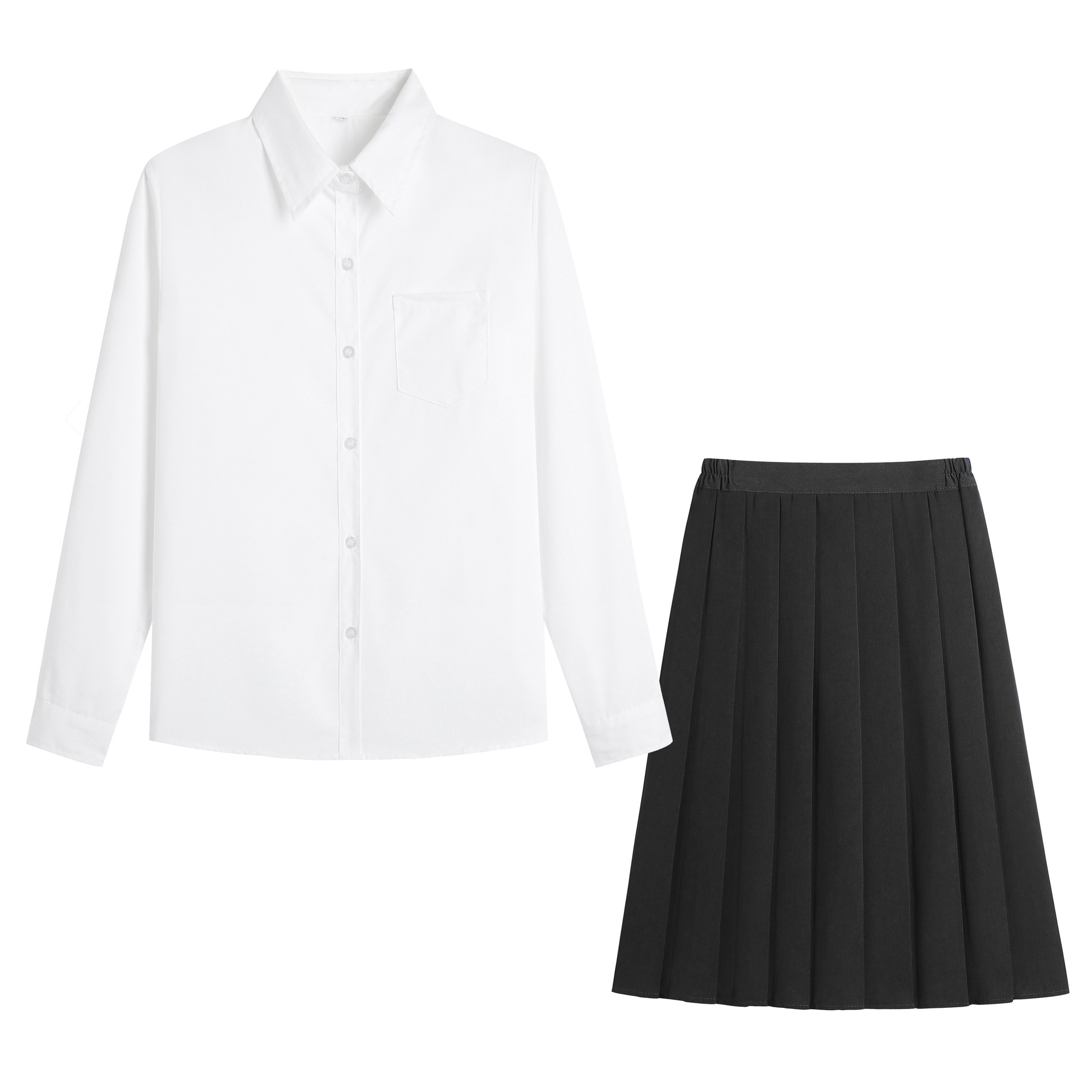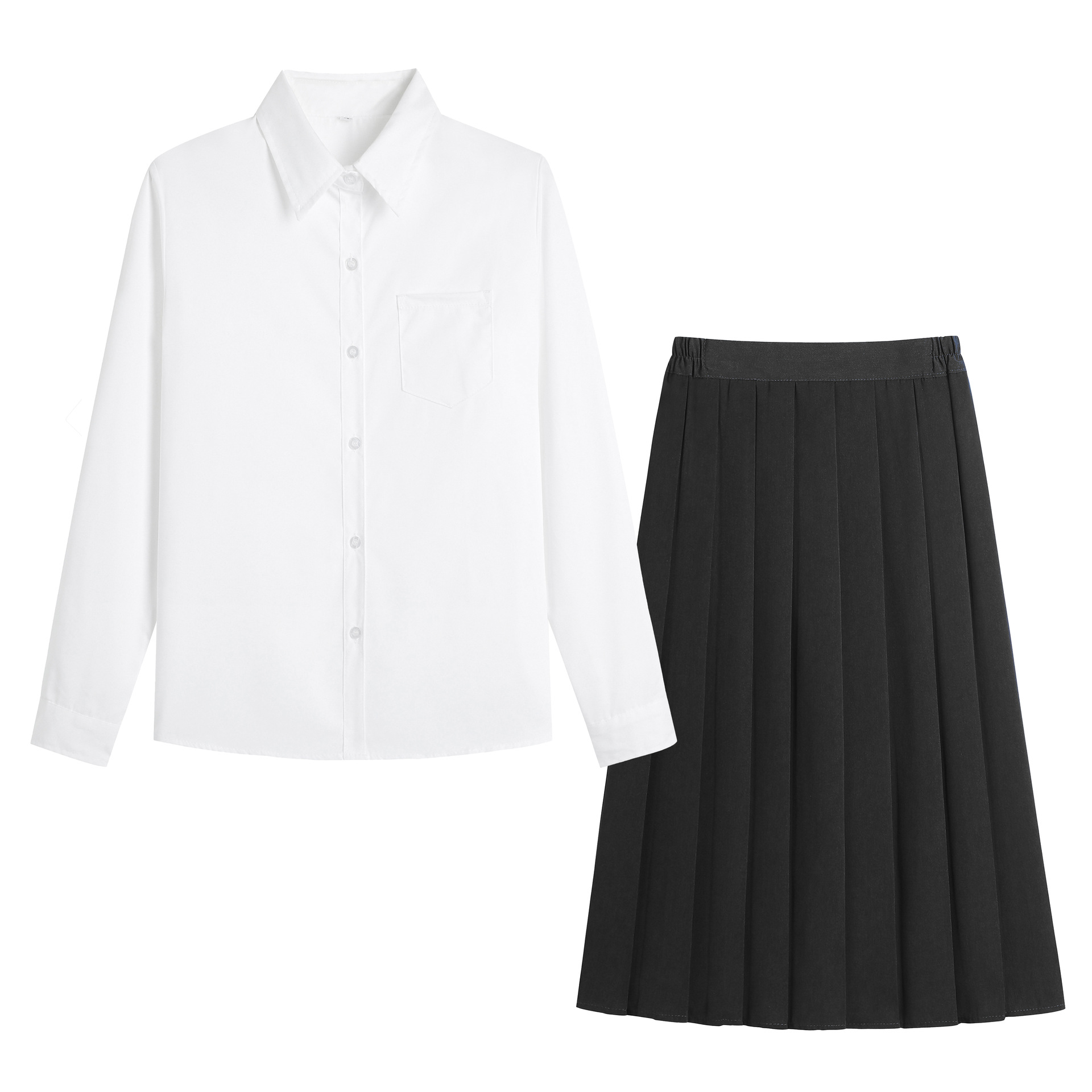• 여아 포인티드 칼라 화이트 긴소매 + 블랙 미디 스커트