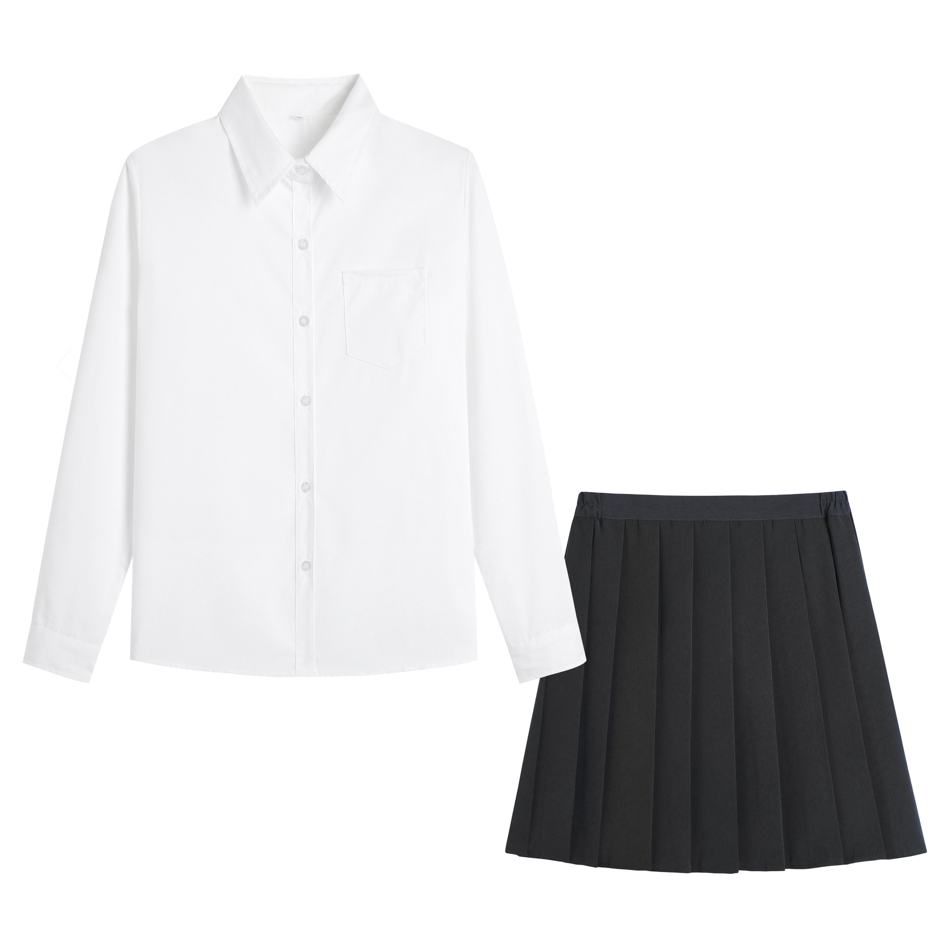 • 여자 포인티드 칼라 흰색 긴 소매 + 검은색 짧은 치마