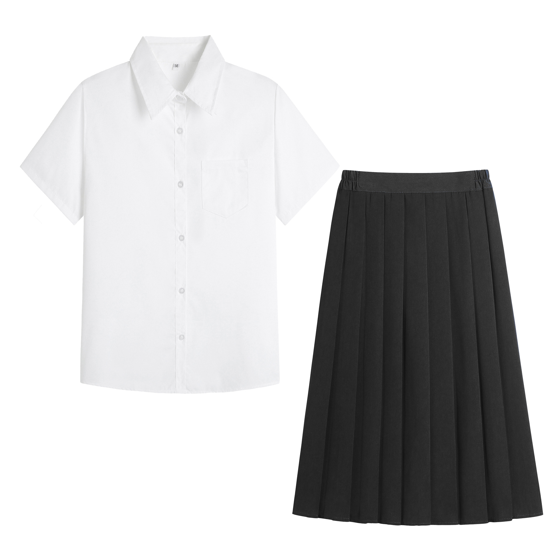• 여아 포인티드 칼라 흰색 반팔 + 검정색 롱 스커트