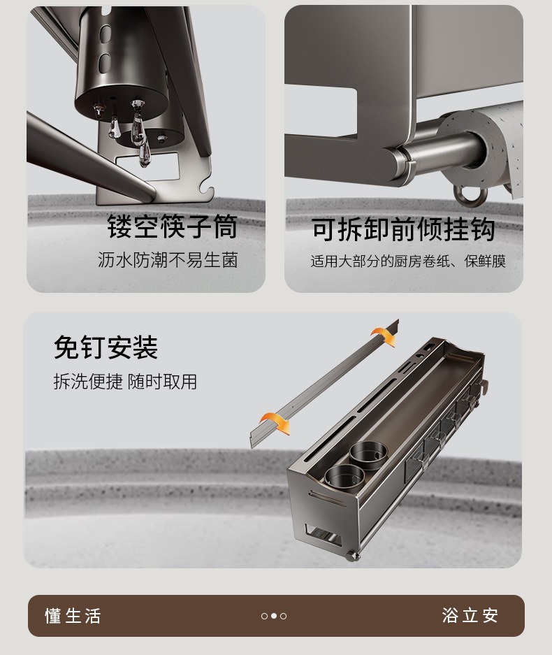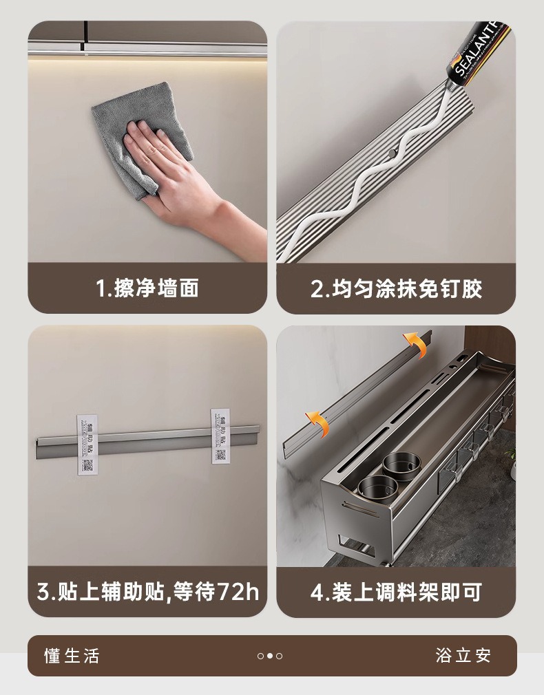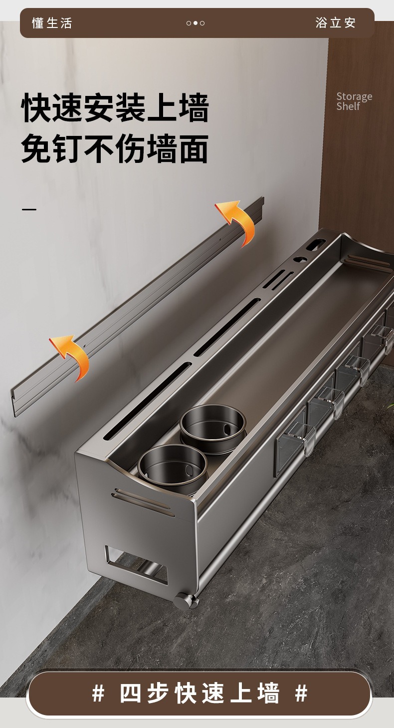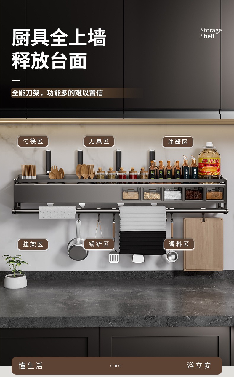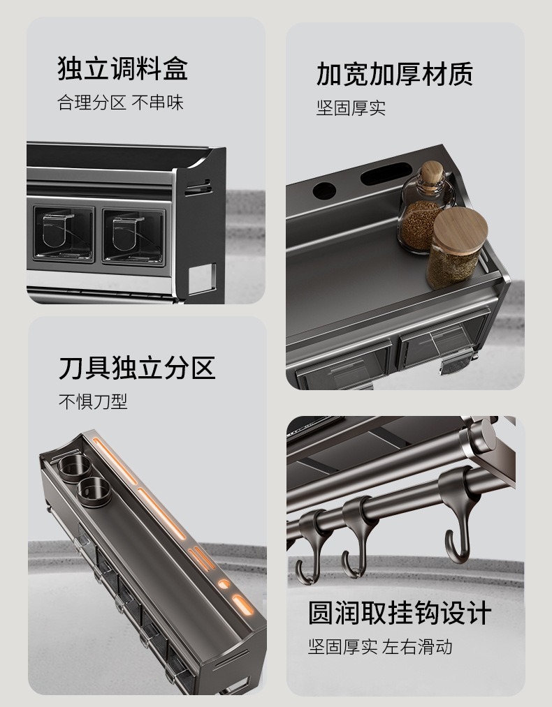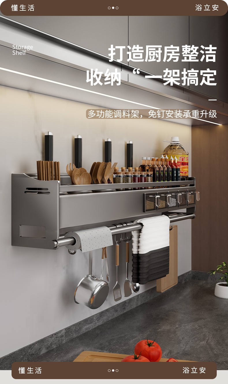 가정용 주방 보관 랙 벽 매달린 조미료 랙 나이프 랙 통합 젓가락 숟가락 저장 필름 펀치 프리 스토리지 랙