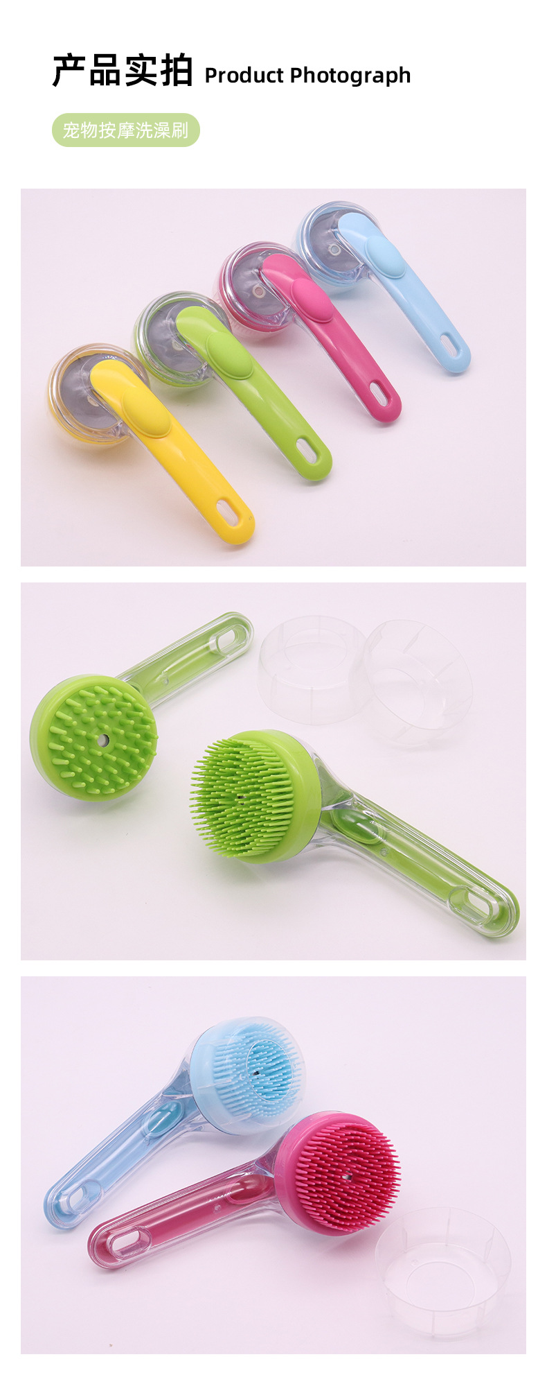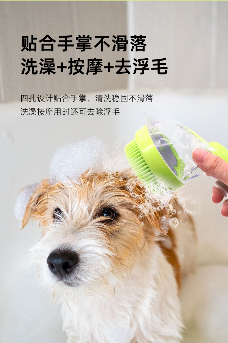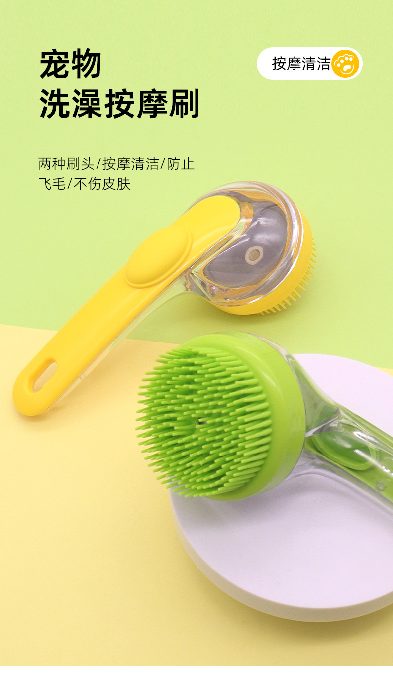애완 동물 목욕 브러시 새로운 프레스 액체 확장 핸들 마사지 브러시 문지르는 유물 고양이 개 목욕 브러시