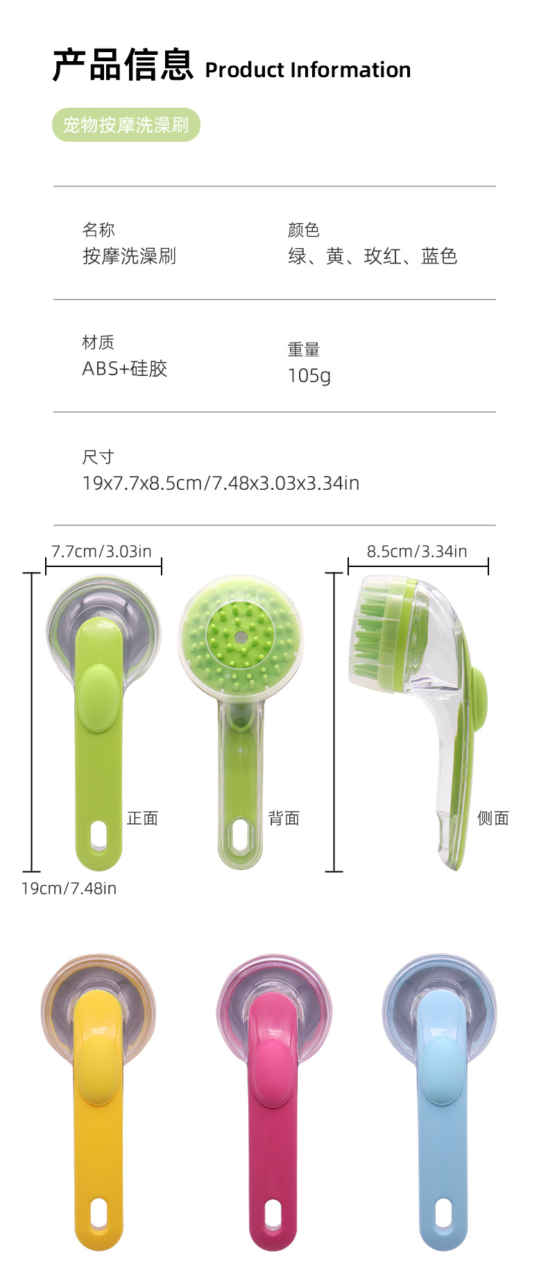 애완 동물 목욕 브러시 새로운 프레스 액체 확장 핸들 마사지 브러시 문지르는 유물 고양이 개 목욕 브러시스토어 가기