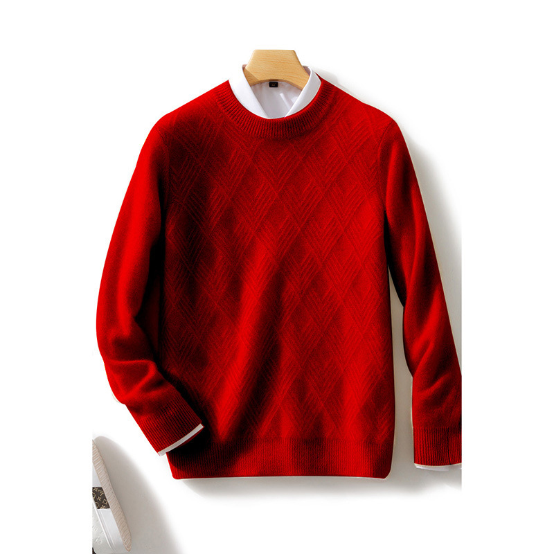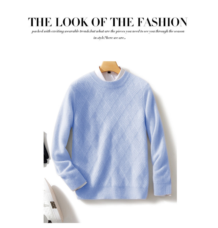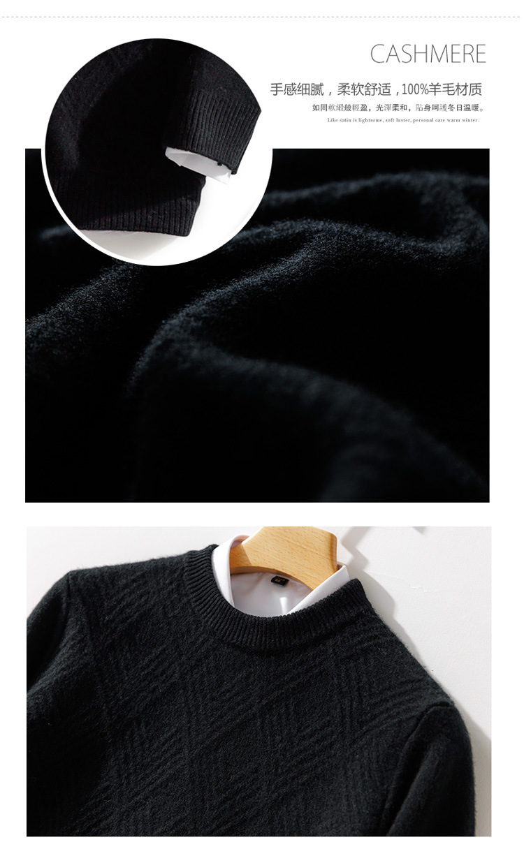 2024 가을과 겨울 새로운 부드러운 양모 남성용 느슨한 크루 넥 스웨터 비즈니스 캐주얼 두꺼운 캐시미어 니트베이스 셔츠