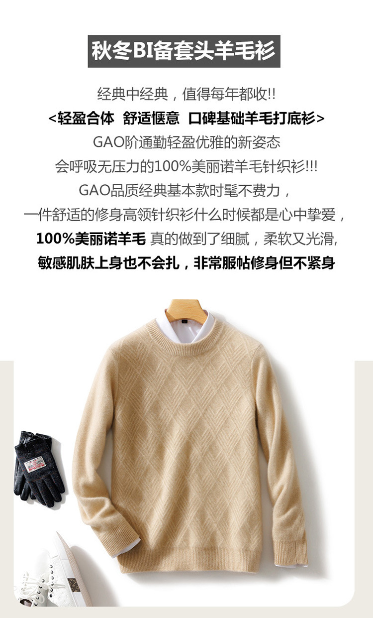 2024 가을과 겨울 새로운 부드러운 양모 남성용 느슨한 크루 넥 스웨터 비즈니스 캐주얼 두꺼운 캐시미어 니트베이스 셔츠스토어 가기