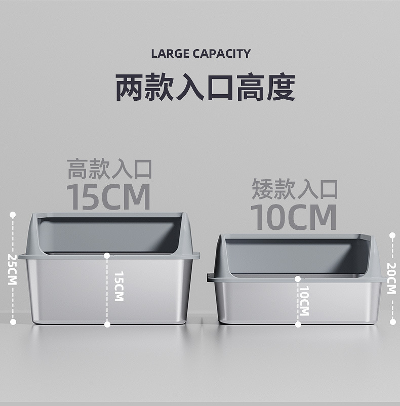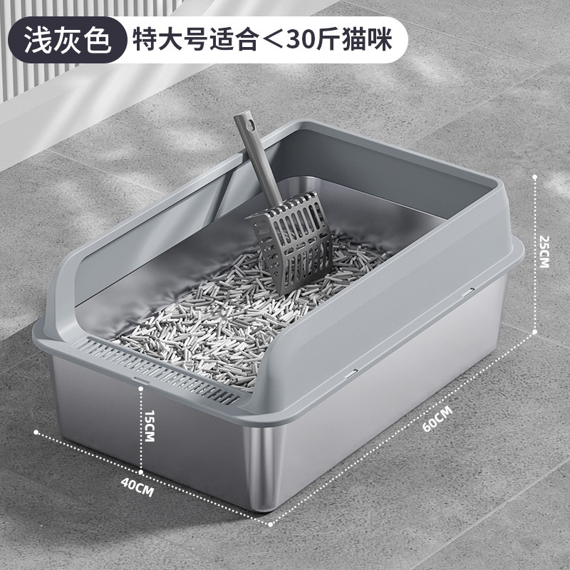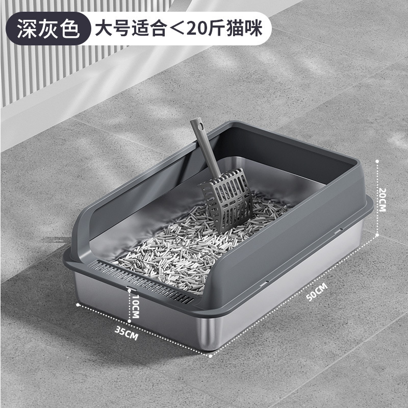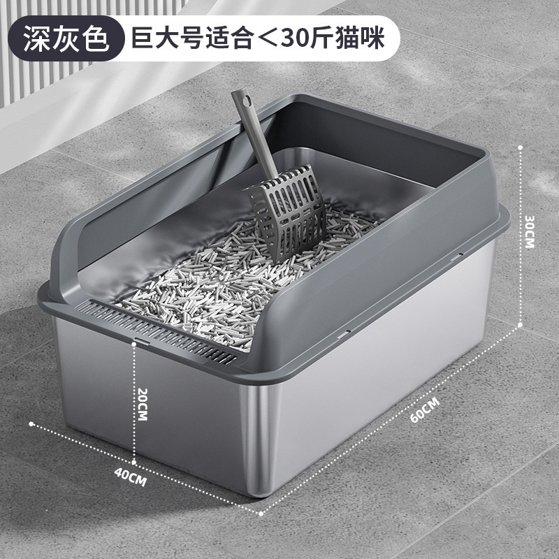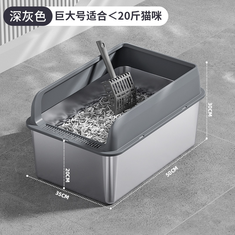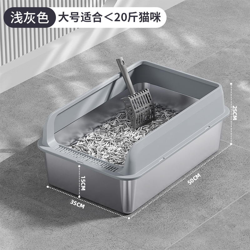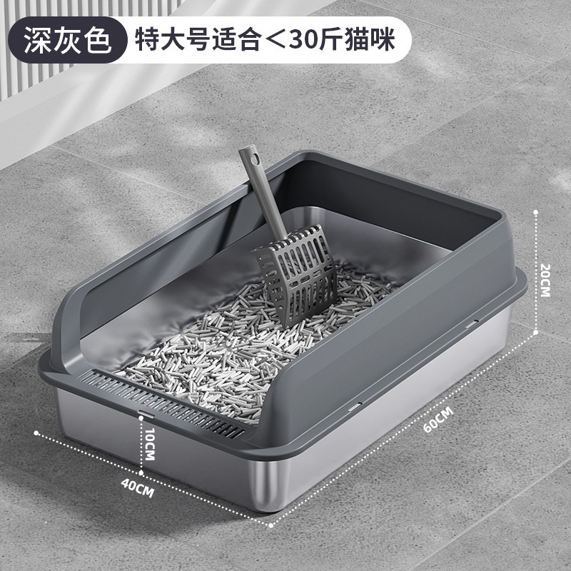스테인레스 스틸 고양이 쓰레기 분지 오픈 고양이 쓰레기 분지 높은 울타리 대형 안티 스플래시 딥 반 폐쇄 고양이 화장실