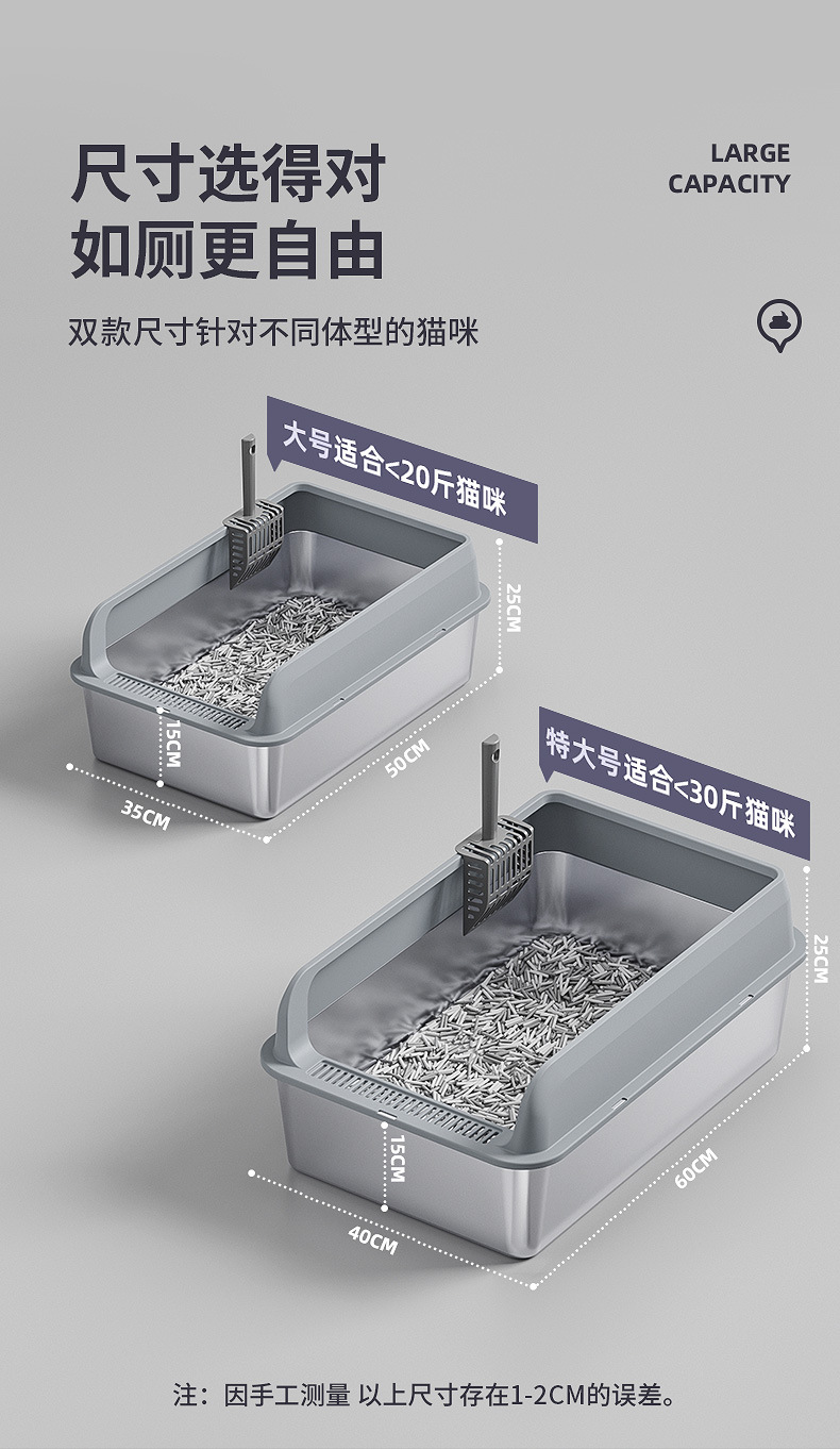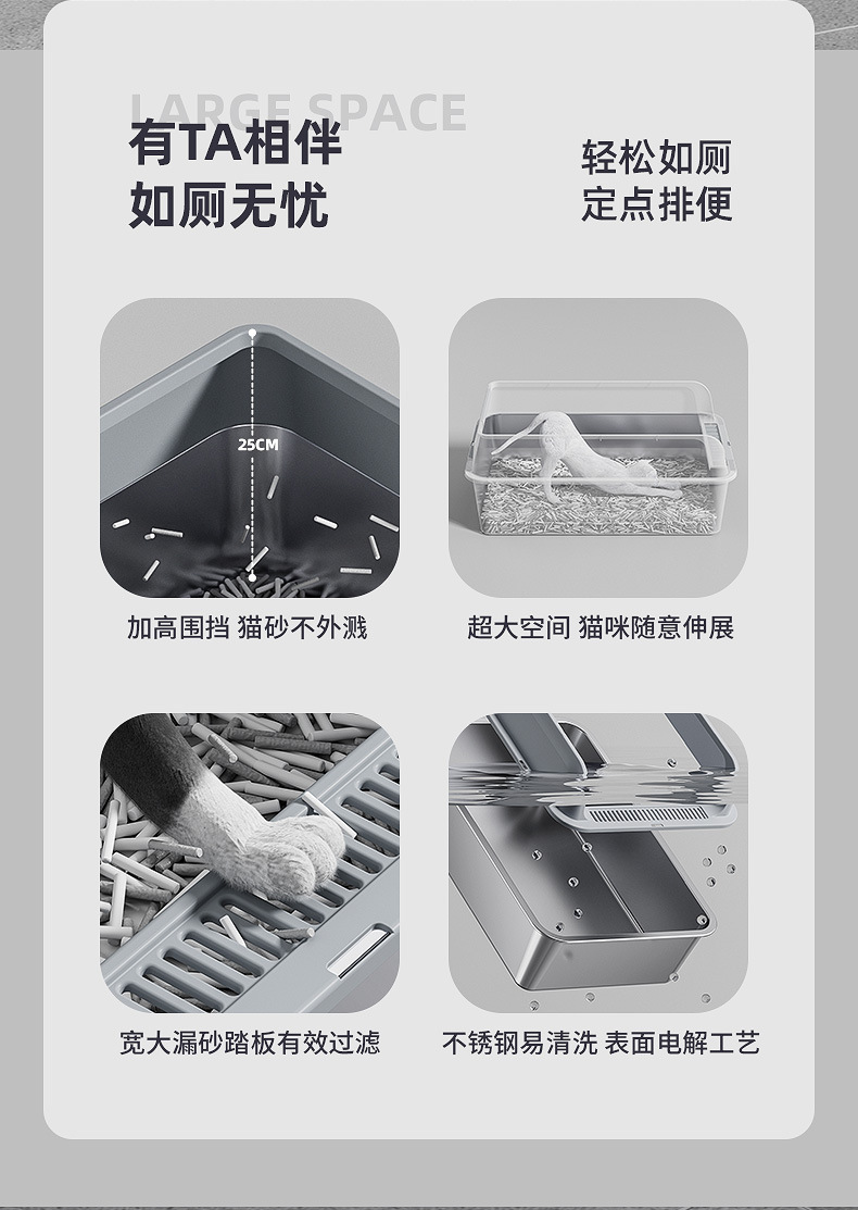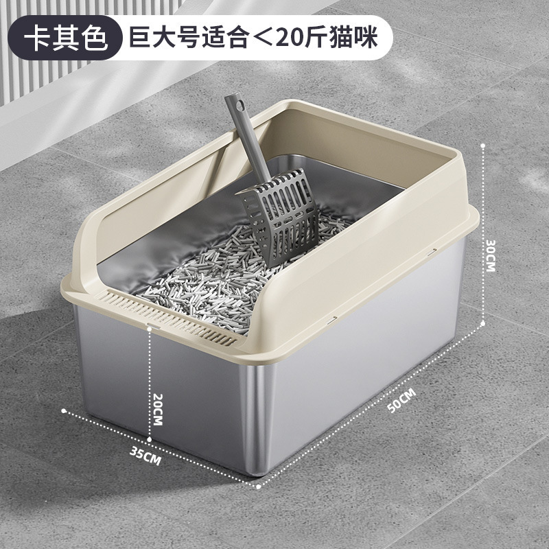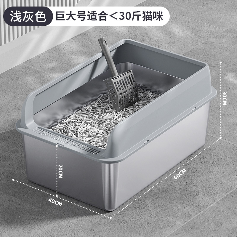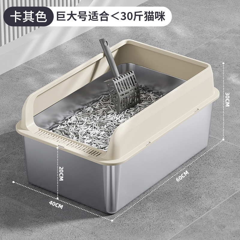 스테인레스 스틸 고양이 쓰레기 분지 오픈 고양이 쓰레기 분지 높은 울타리 대형 안티 스플래시 딥 반 폐쇄 고양이 화장실