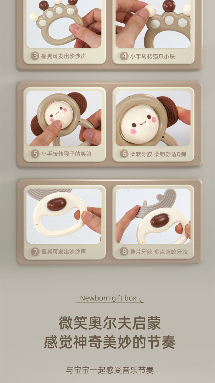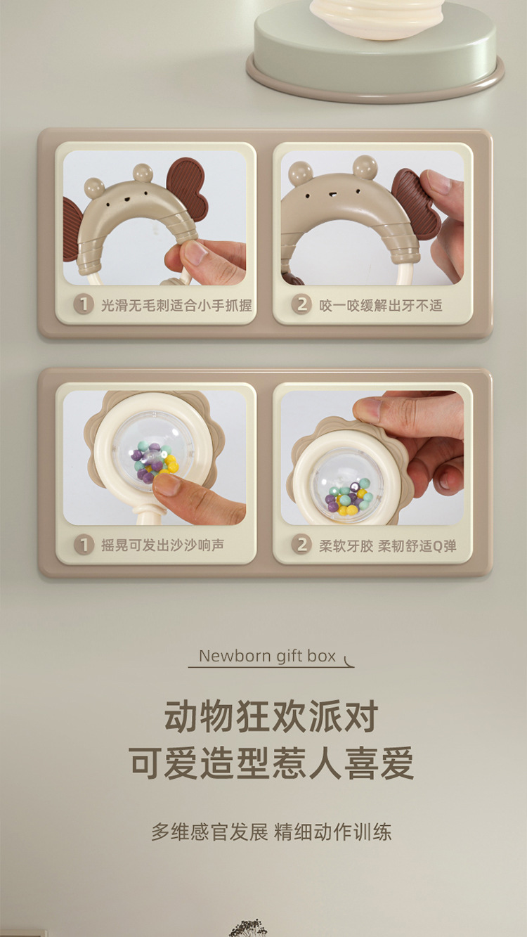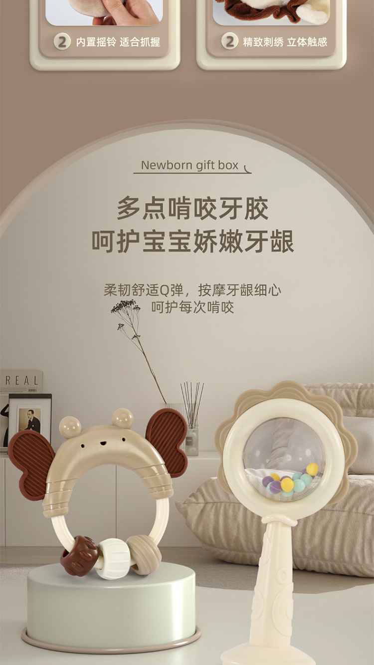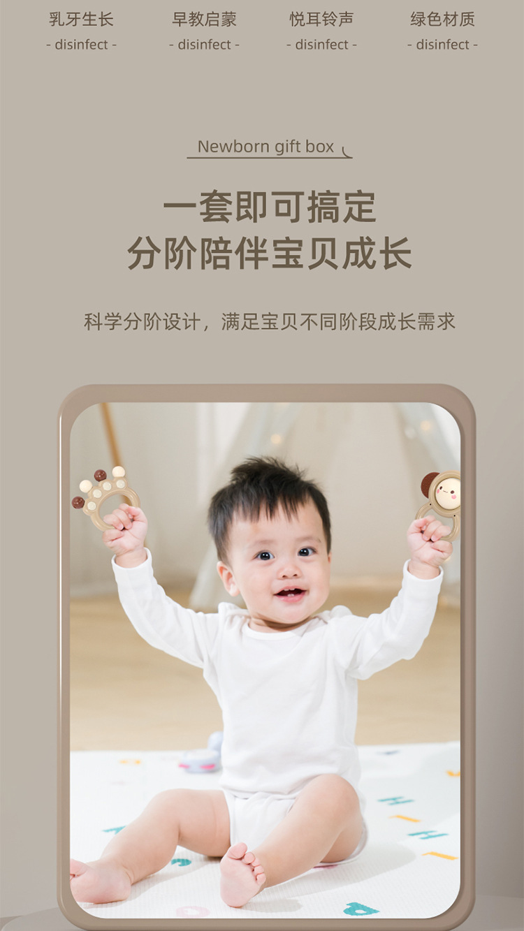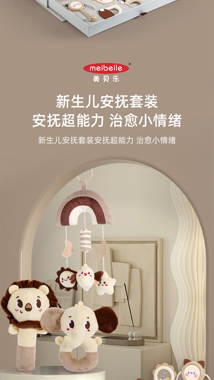 Meibeile 신생아 진정 선물 상자 이빨 딸랑이 침대 벨 치아 젤 아기 잡기 교육 조기 교육 장난감 선물스토어 가기
