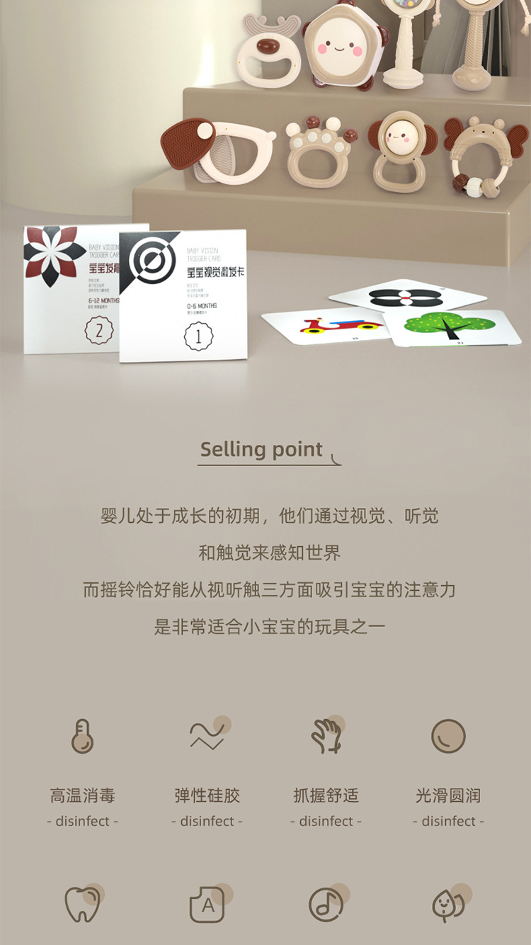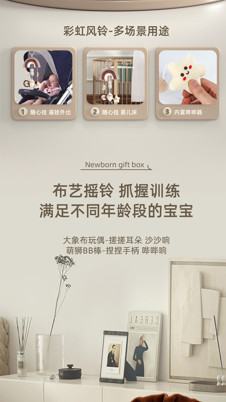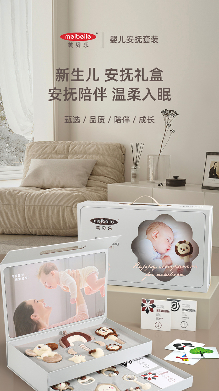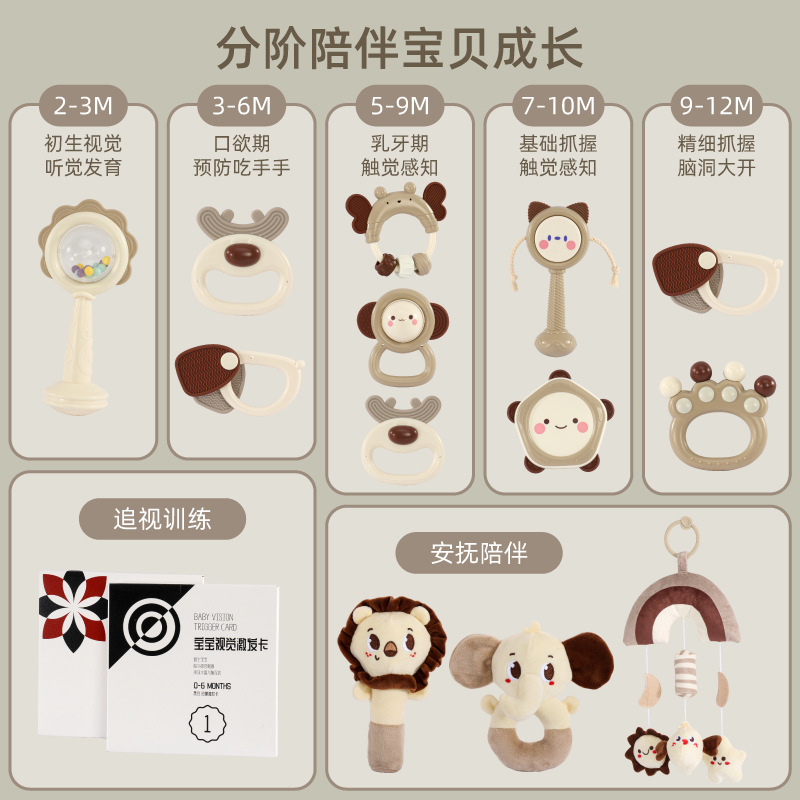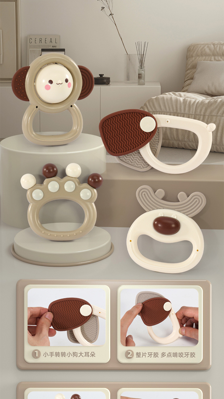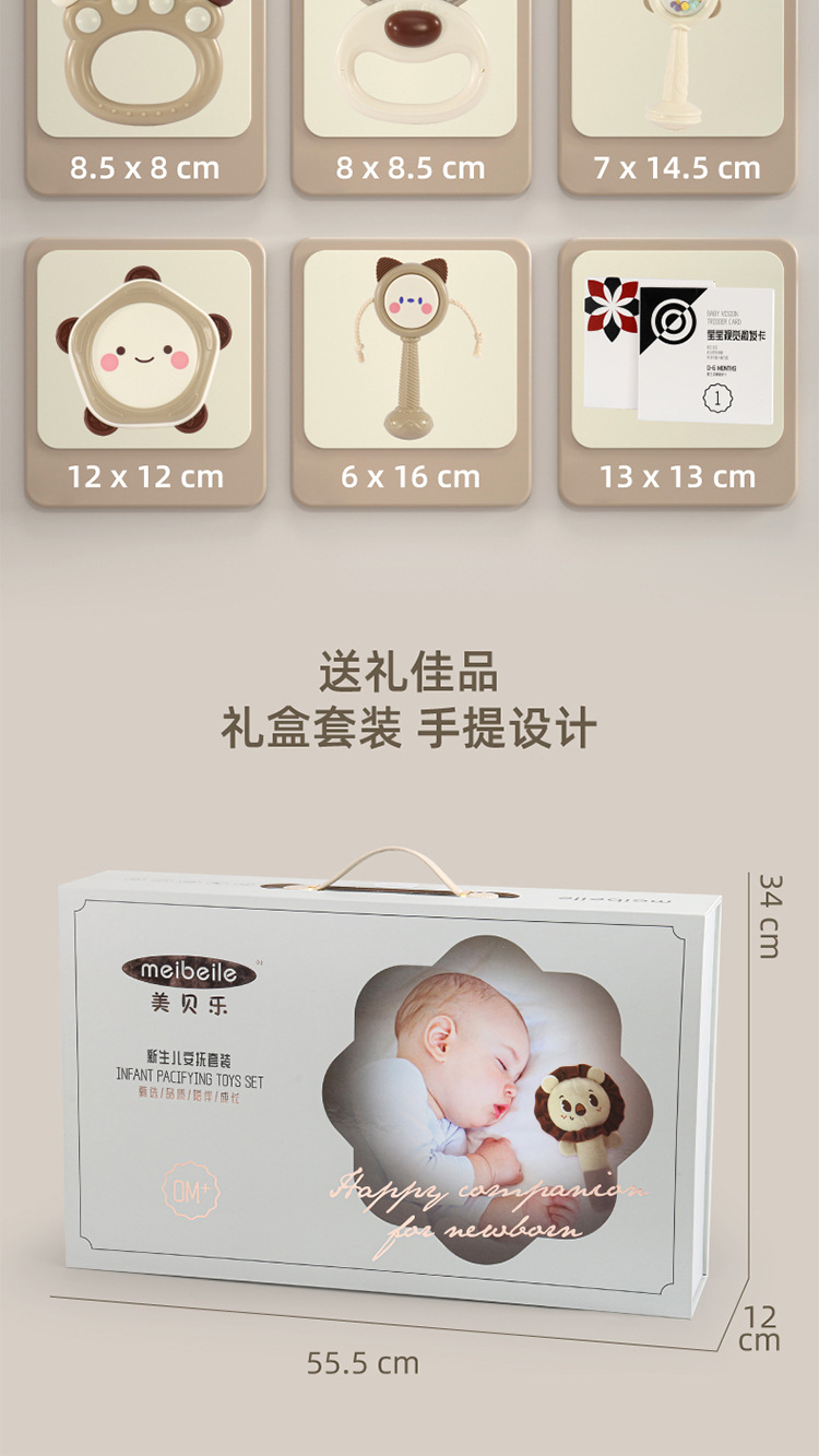 Meibeile 신생아 진정 선물 상자 이빨 딸랑이 침대 벨 치아 젤 아기 잡기 교육 조기 교육 장난감 선물스토어 가기