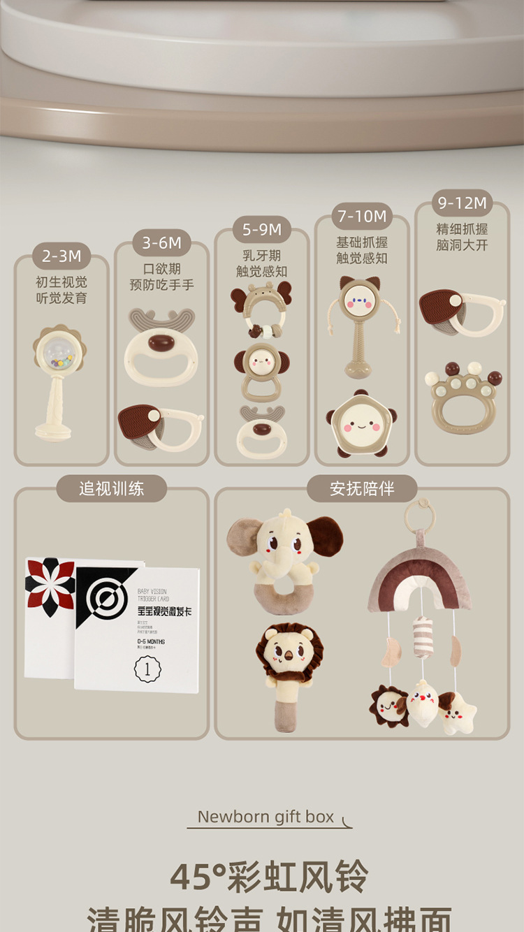 Meibeile 신생아 진정 선물 상자 이빨 딸랑이 침대 벨 치아 젤 아기 잡기 교육 조기 교육 장난감 선물