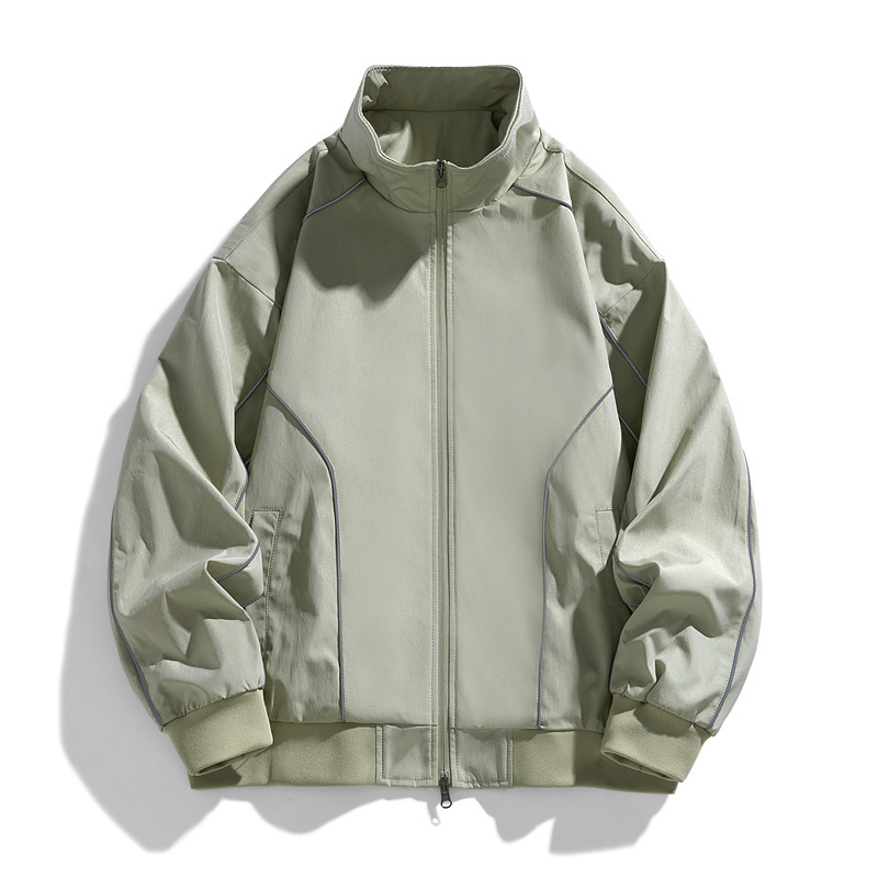 수직 칼라 남자의 단색 캐주얼 느슨한 봄과 가을 새로운 느슨한 캐주얼 야외 스포츠 툴링 유행 브랜드 등산 재킷
