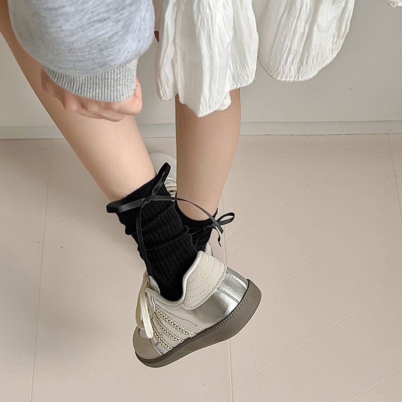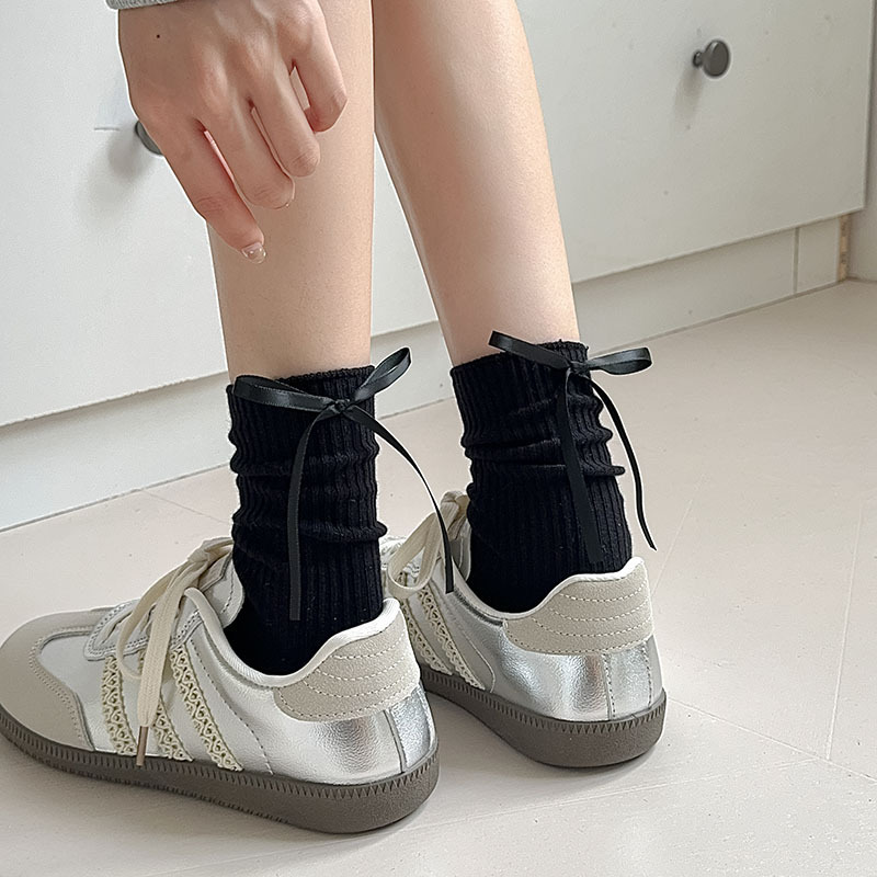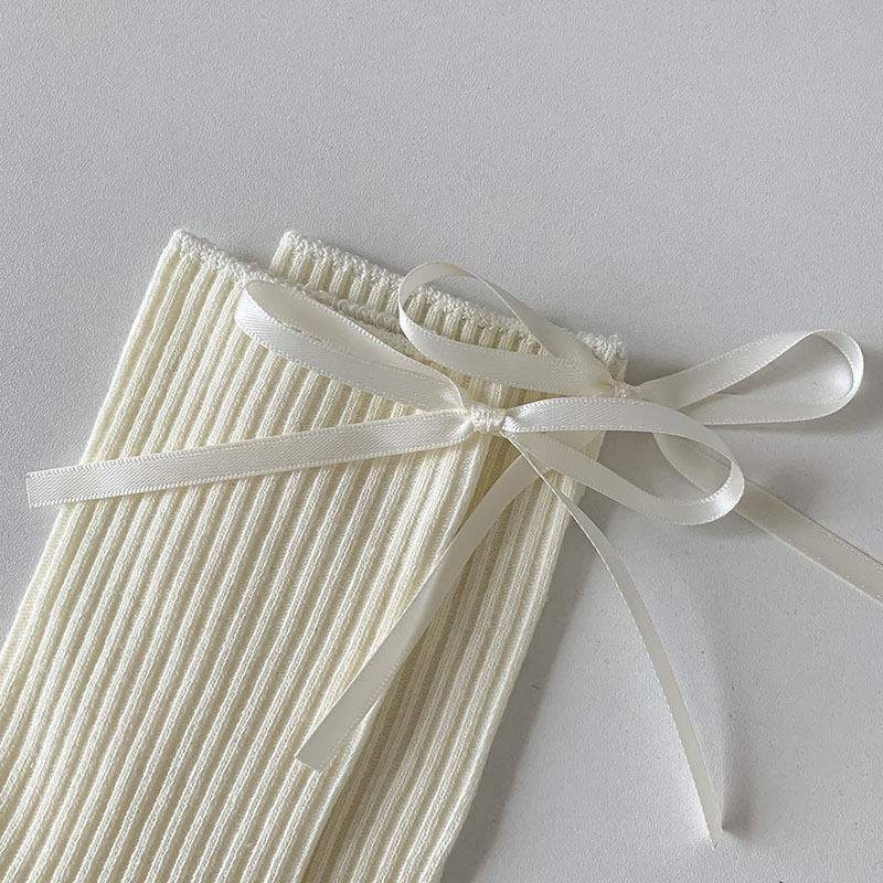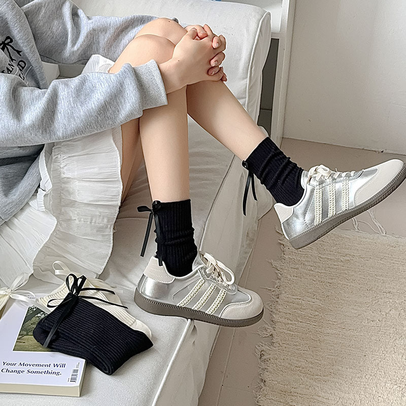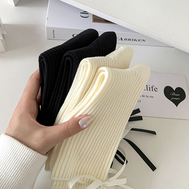 JK 양말 여성 가을 및 겨울 새로운 미드 튜브 더블 바늘 리본 활 여성 양말 한국 내부 흑백 발레 스타일 코튼 양말