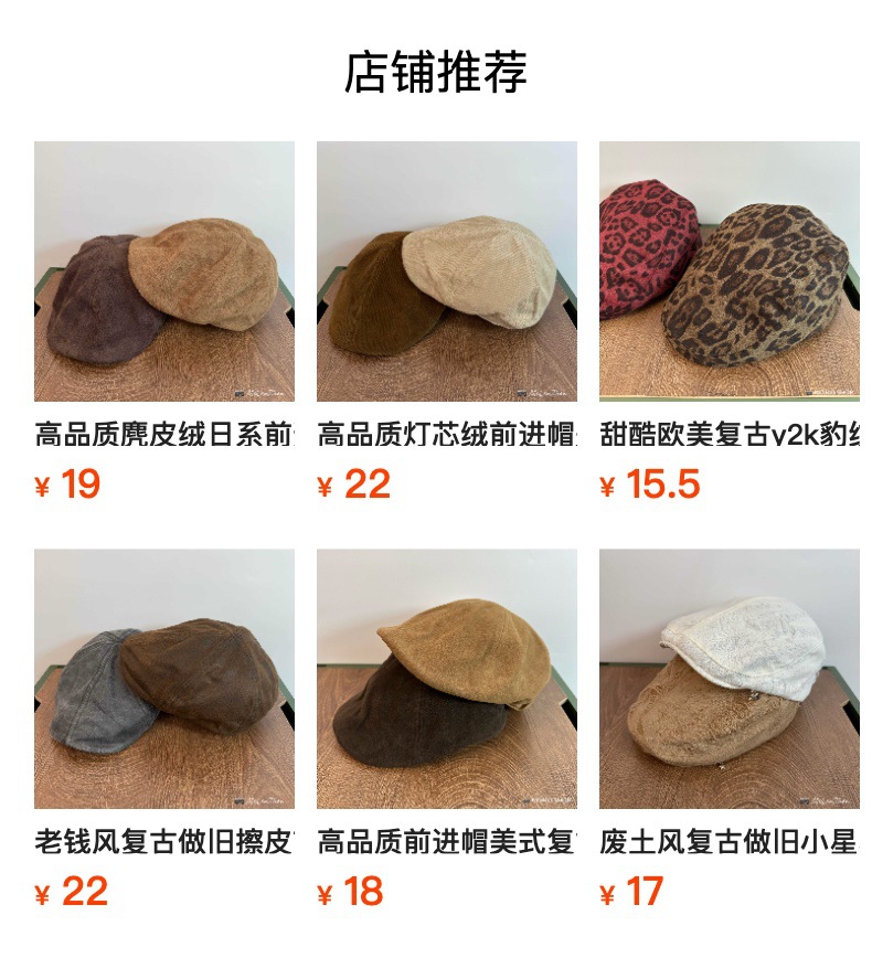 홍콩 스타일 캐주얼 레트로 클래식 화가 모자 코듀로이 베레 솔리드 컬러 올 매치 우아한 프레스 북 보이 모자스토어 가기