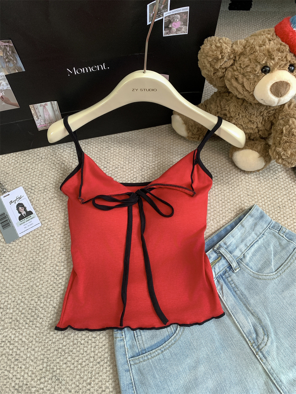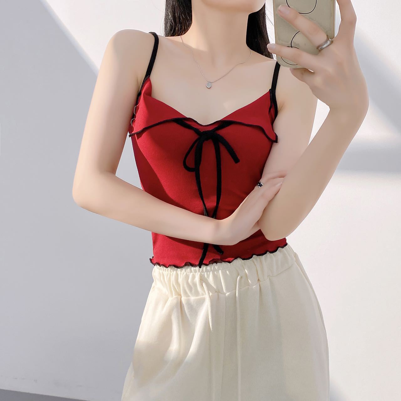 활 카미 솔 여성의 명암 옷깃 아우터 달콤하고 뜨거운 민소매 섹시한 슬림-안쪽에 맞는 아름다운 뒷베이스 탑스토어 가기
