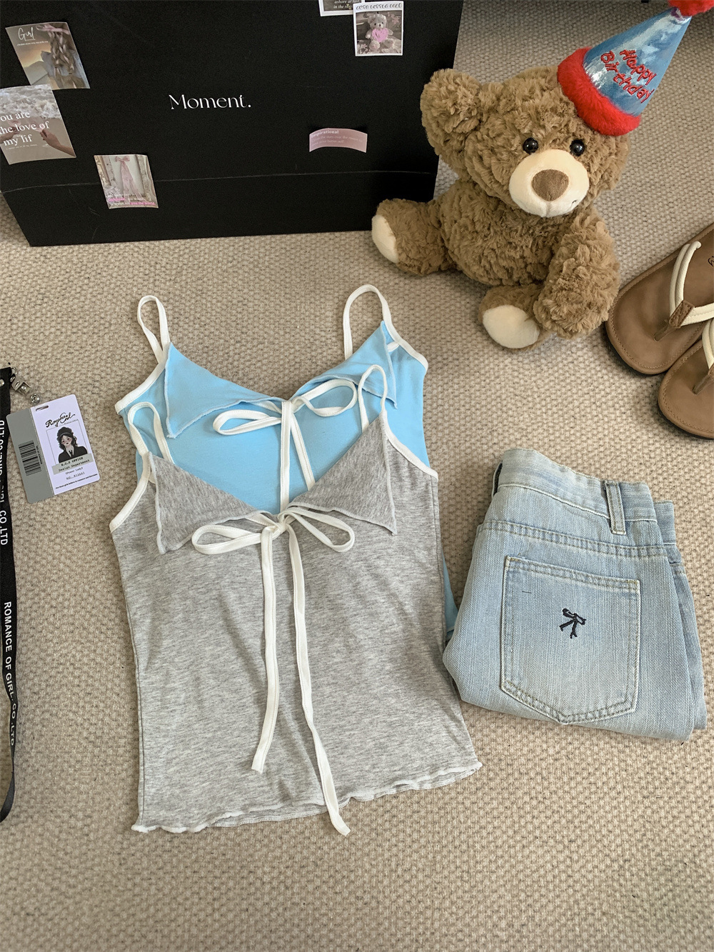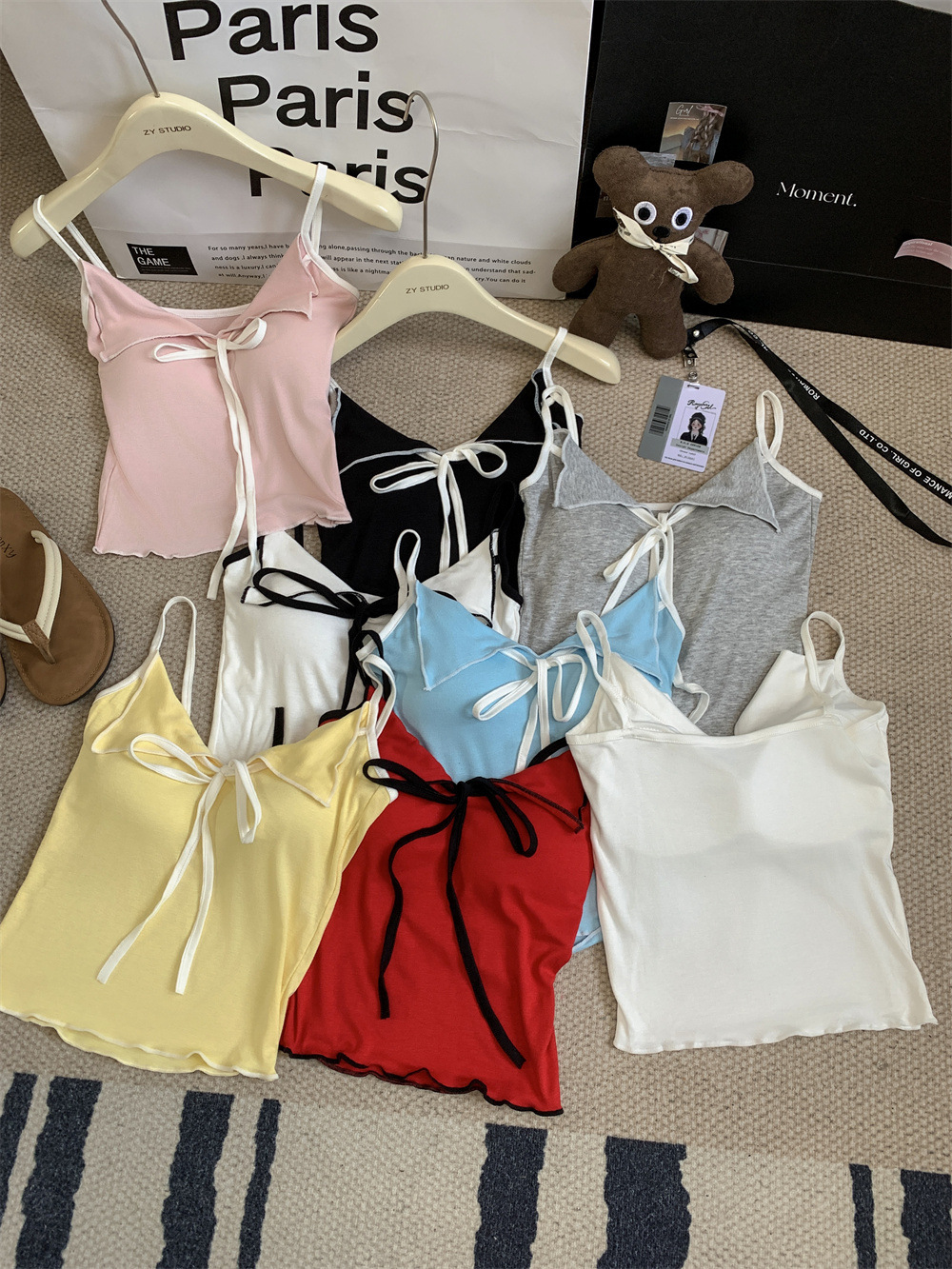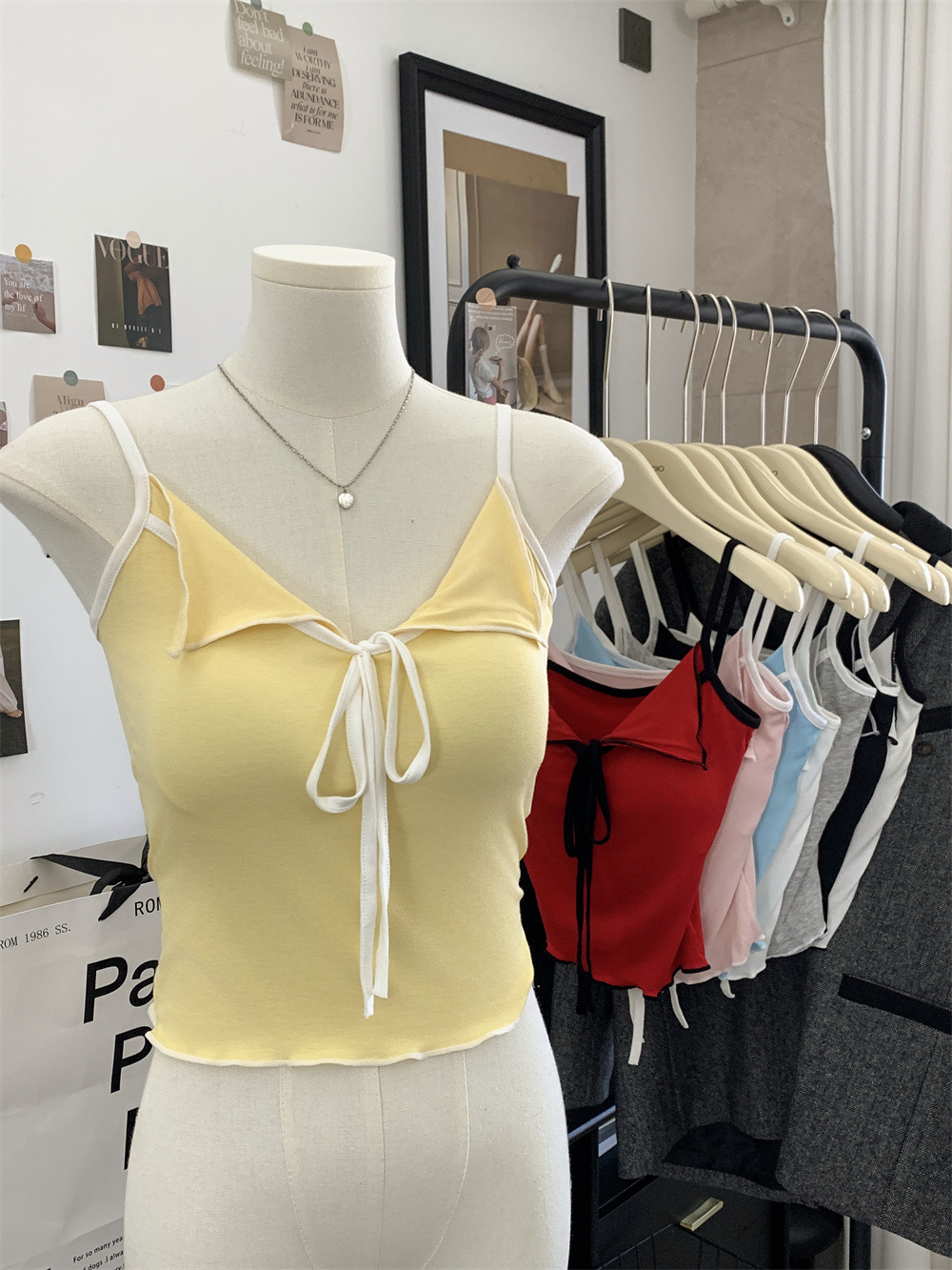 활 카미 솔 여성의 명암 옷깃 아우터 달콤하고 뜨거운 민소매 섹시한 슬림-안쪽에 맞는 아름다운 뒷베이스 탑