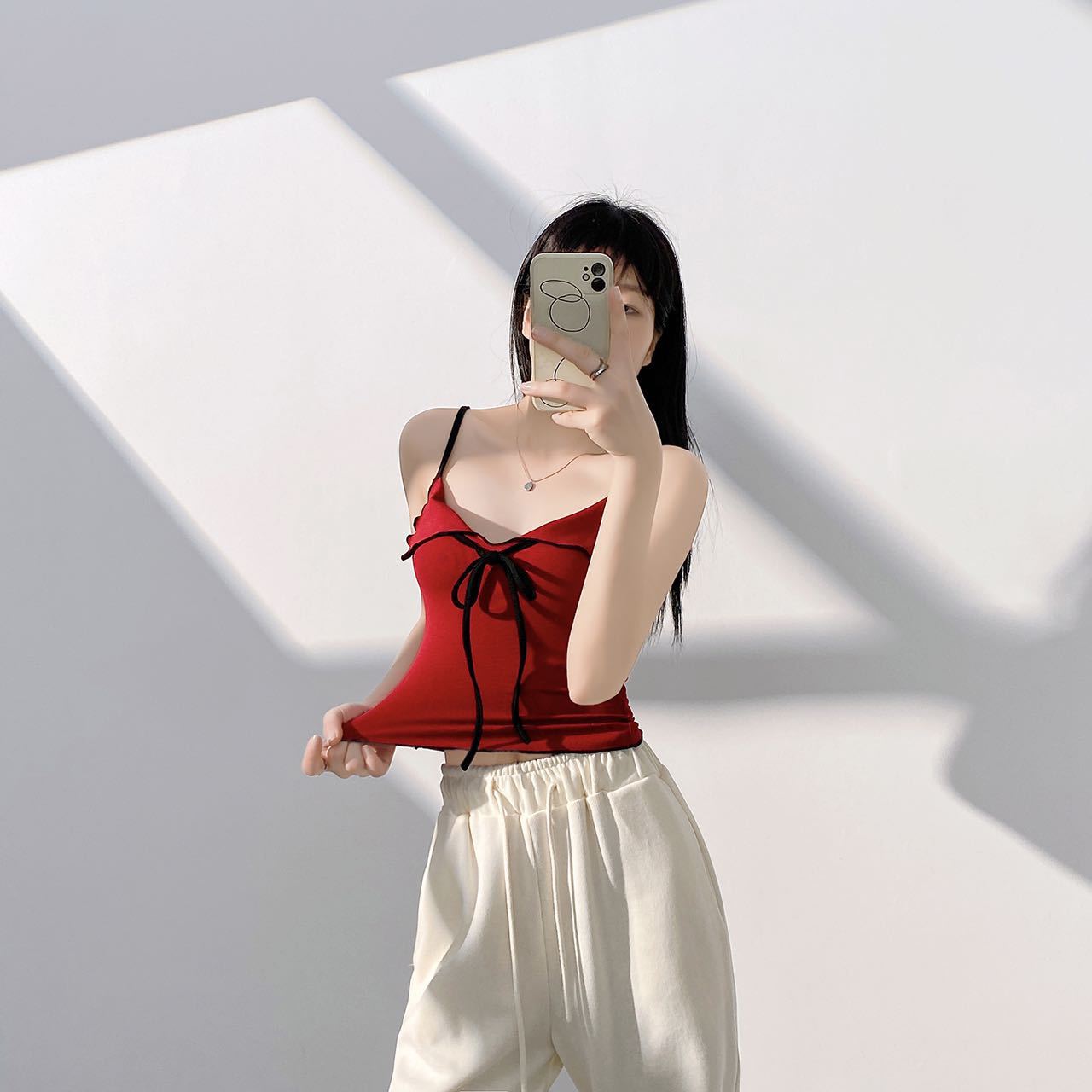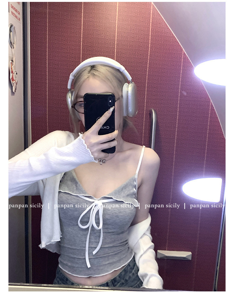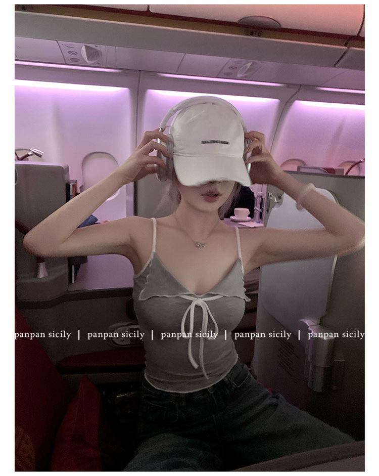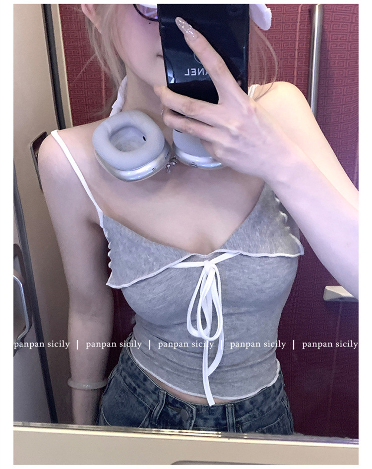 활 카미 솔 여성의 명암 옷깃 아우터 달콤하고 뜨거운 민소매 섹시한 슬림-안쪽에 맞는 아름다운 뒷베이스 탑