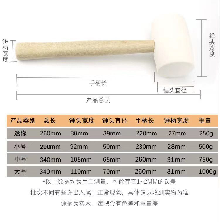 흰색 요리 접착제 고무 망치 나무 손잡이 고무 망치 세라믹 타일 마크와 추적없는 망치가없는 바닥 타일 망치 벽