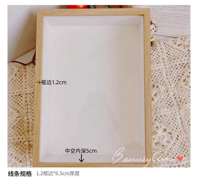 木质中空5cm相框桌面摆台A4立体相框软陶粘土干花标本正方形相框