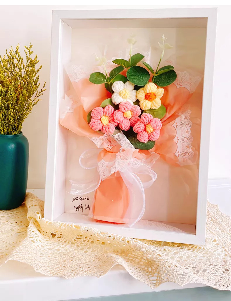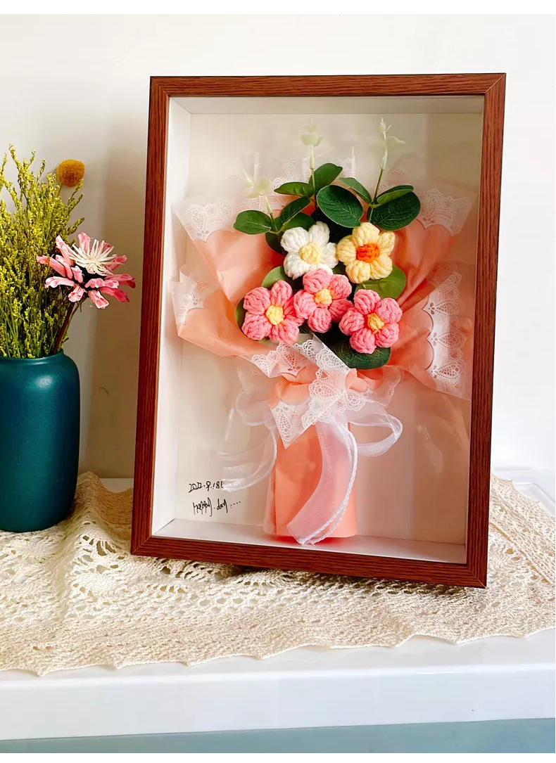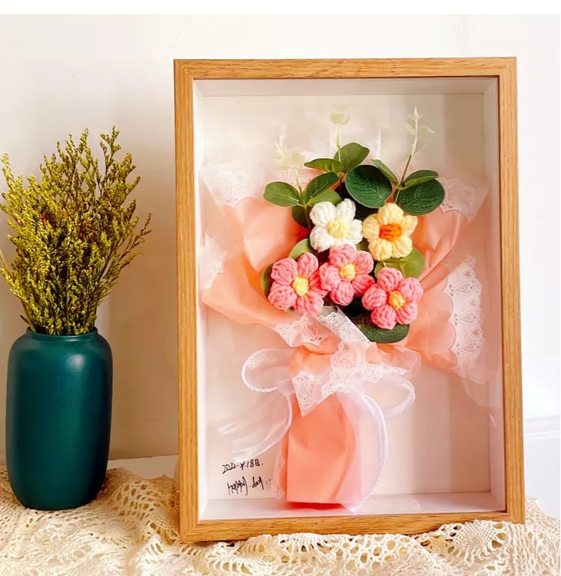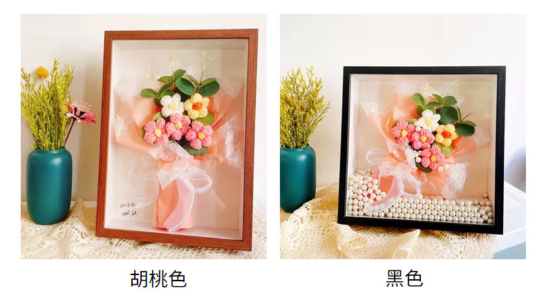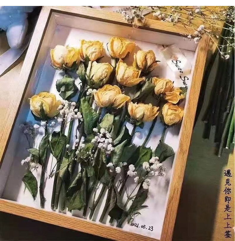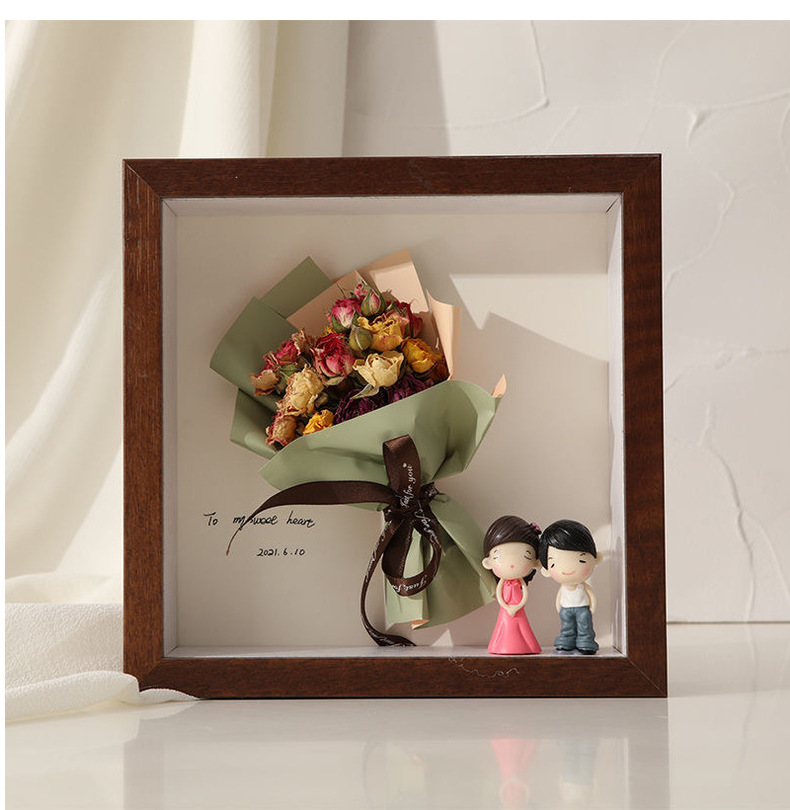 母亲节团建干花相框手工diy木质中空立体双面透明亚克力摆台批发