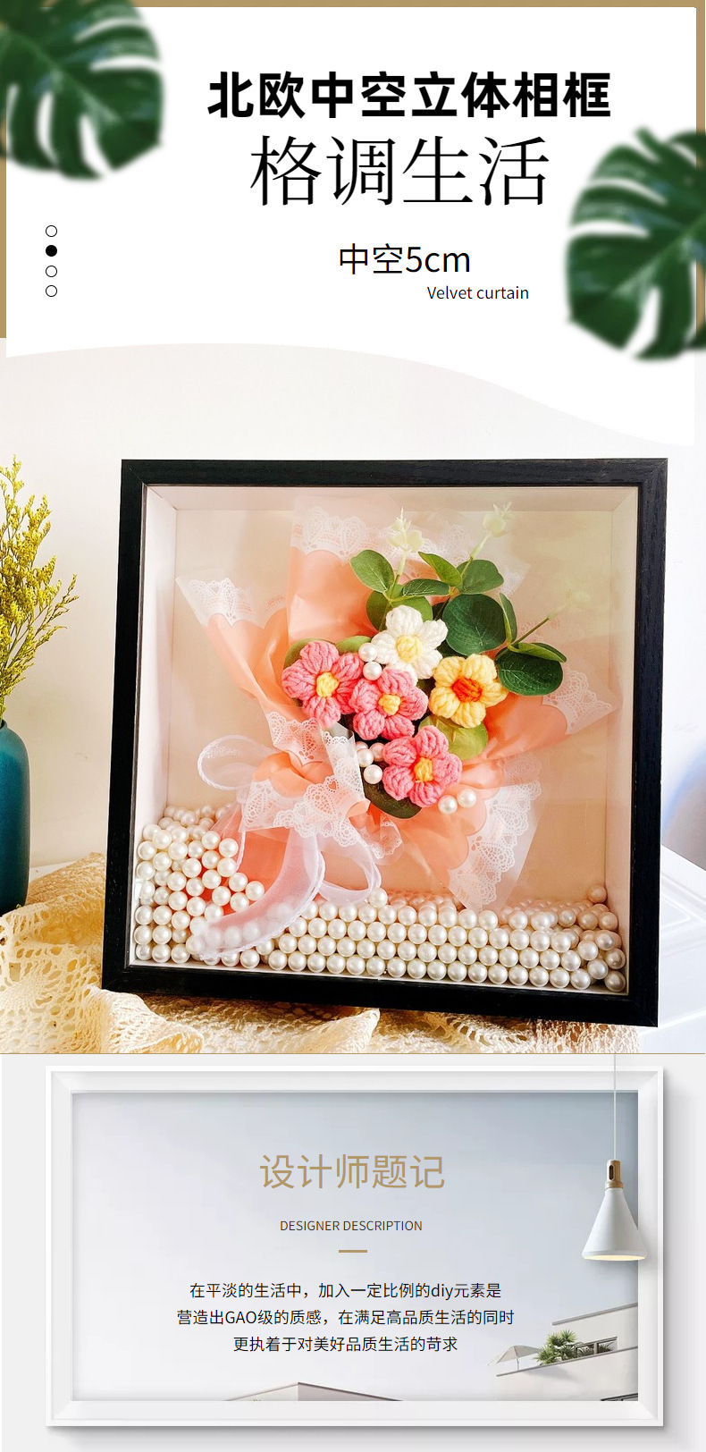 中空3cm立体北欧相框手工diy装裱植物干花贝壳正方形四九宫格画框