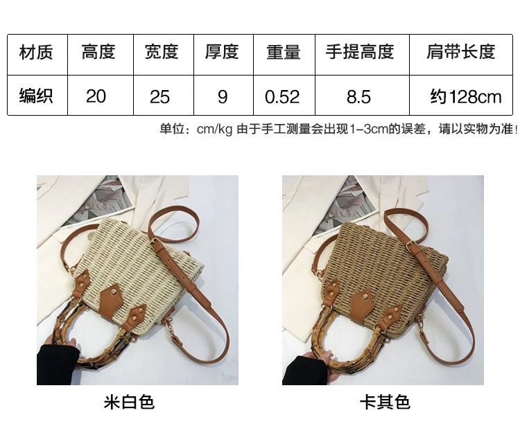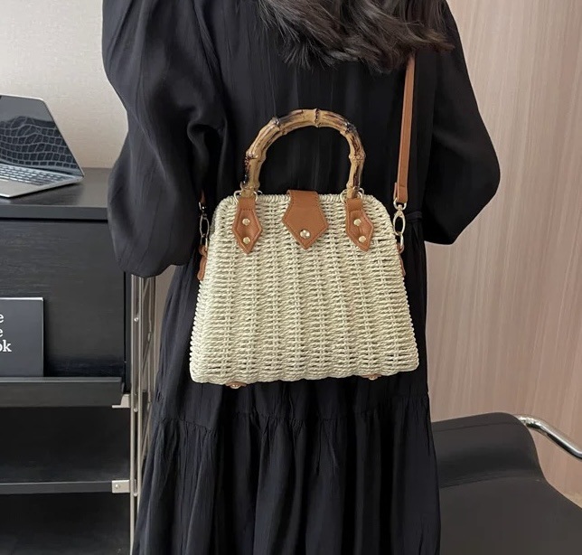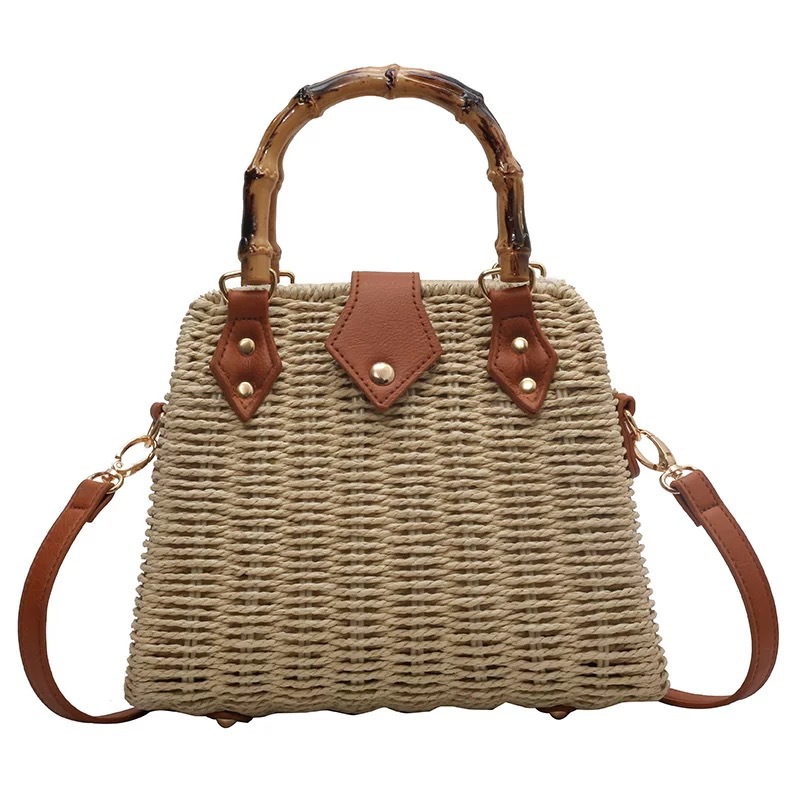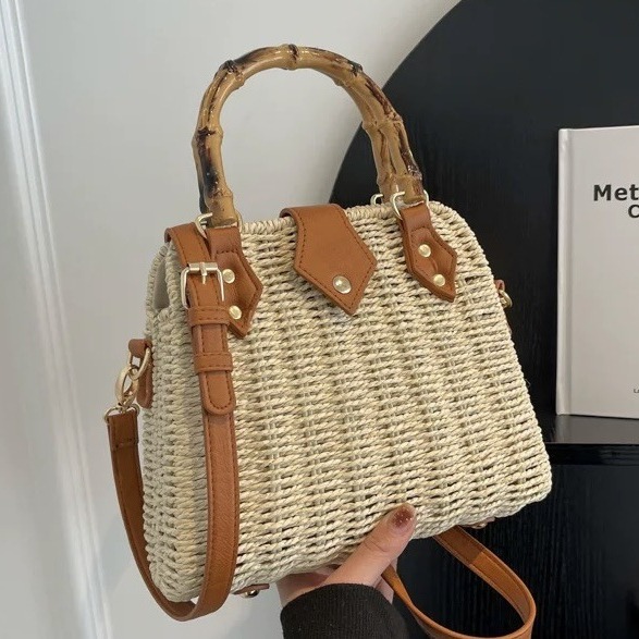 가벼운 럭셔리 레트로 스타일 대나무 휴대용 상자 밀짚 가방 여행 휴가 패션 캐주얼 크로스 바디 가방 모리 스타일 숄더 백