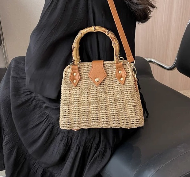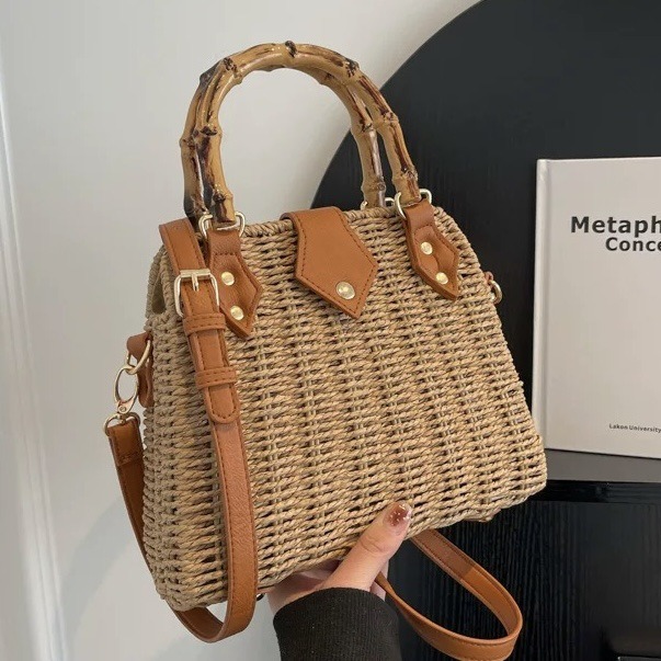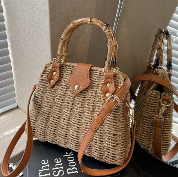 가벼운 럭셔리 레트로 스타일 대나무 휴대용 상자 밀짚 가방 여행 휴가 패션 캐주얼 크로스 바디 가방 모리 스타일 숄더 백스토어 가기