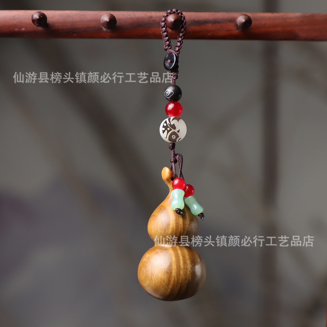 그린 샌달 우드 조롱박 펜던트 자동차 키 체인 하이 엔드 남성과 여성 커플 손으로 짠 Fulu 체인 가방 휴대 전화 펜던트스토어 가기