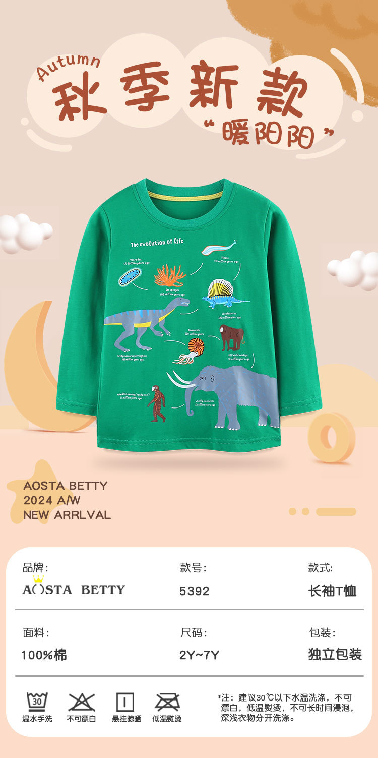 2024 가을 긴 소매 소년의 티셔츠 니트 코튼 크루 넥 아동베이스 셔츠 유럽과 미국 스타일의 동물 프린트 스웨트 셔츠스토어 가기