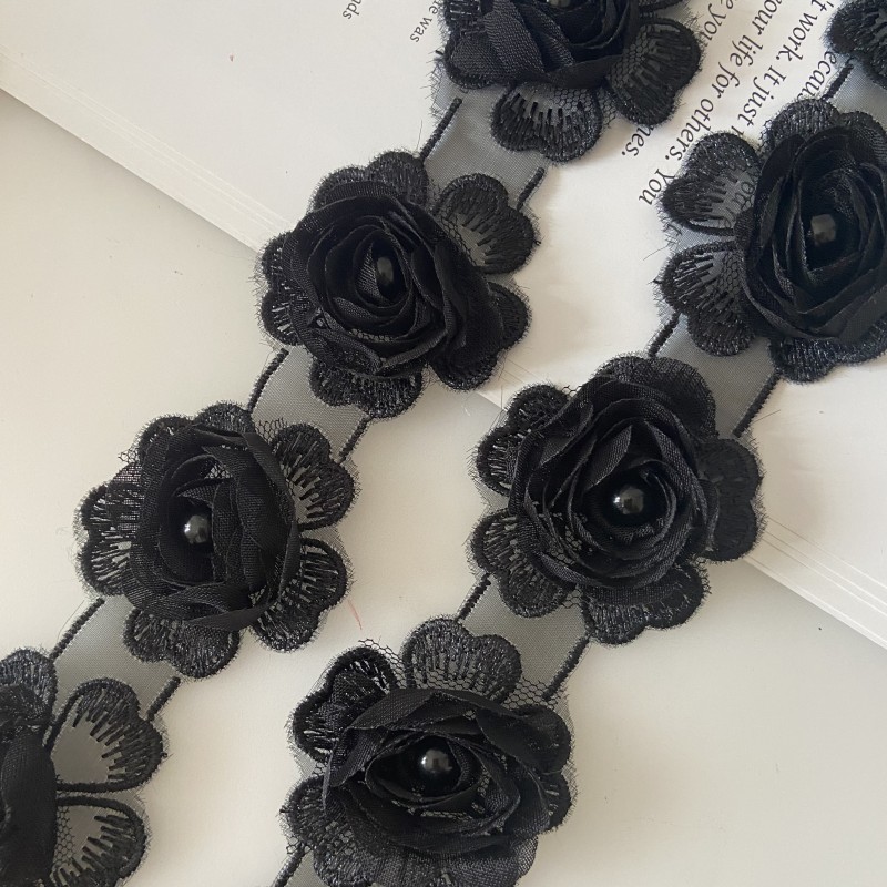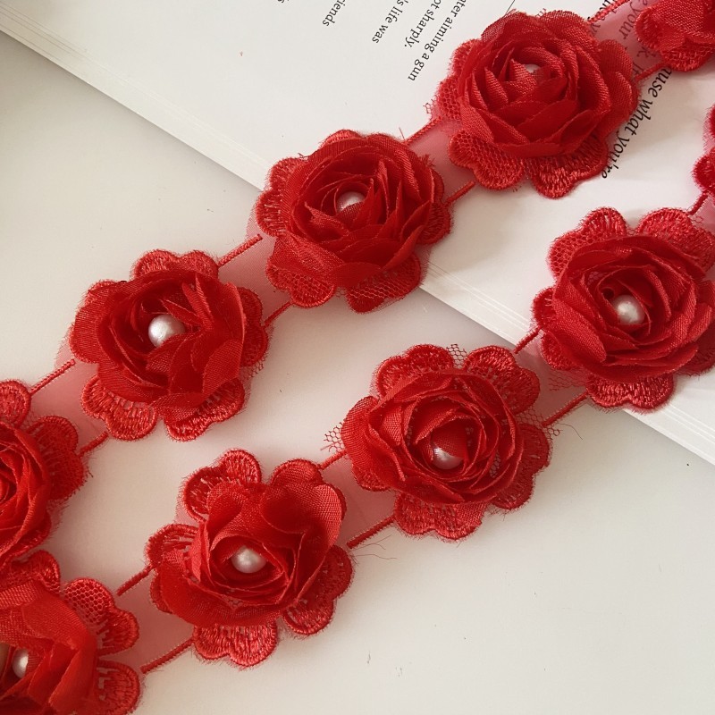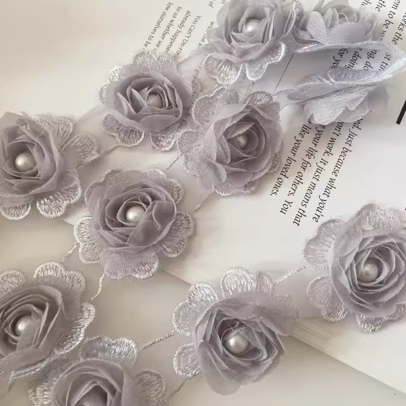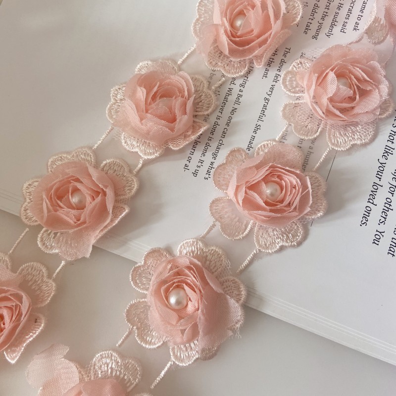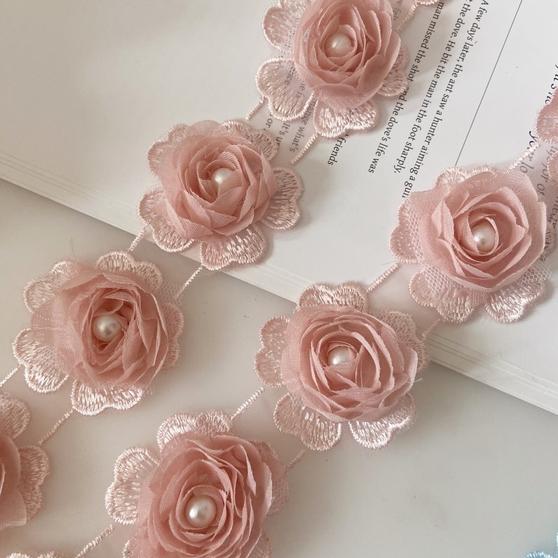 소량의 재고 공급 로즈 쉬폰 3 차원 레이스 네일 펄 버드 의류 액세서리 대외 무역 공급