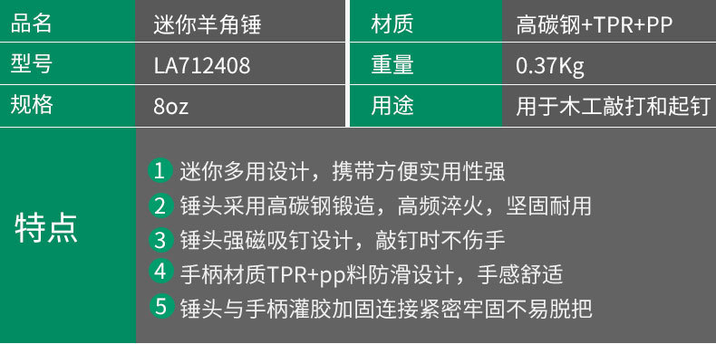 • 미니 다기능 클로 해머 8OZ