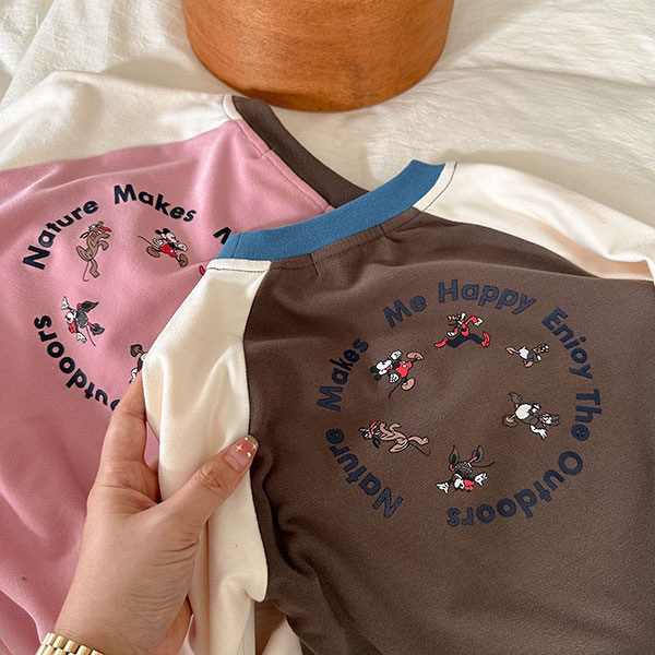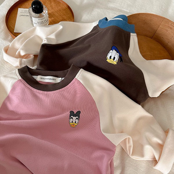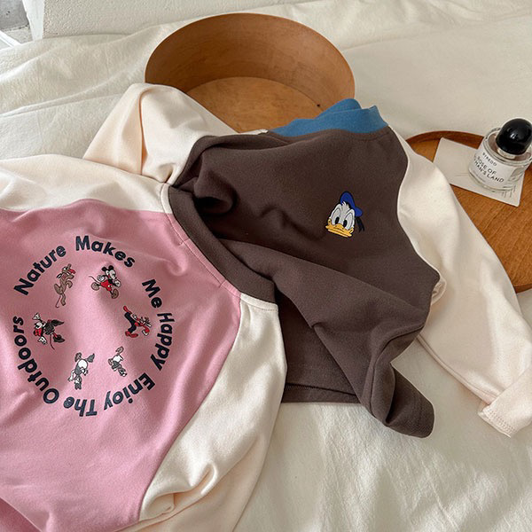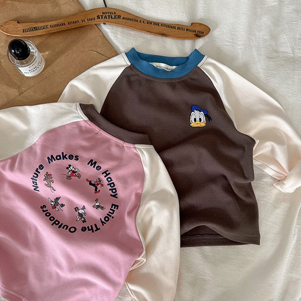 어린이 긴팔 티셔츠 2023 가을과 겨울 새 소년과 소녀 만화 대비 컬러 베이스 셔츠 아기 봄과 가을 좋은 티셔츠 트렌디스토어 가기