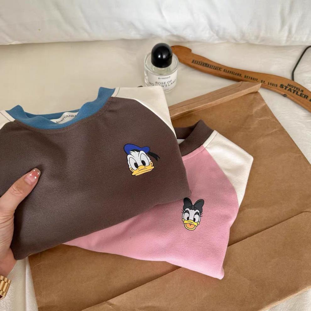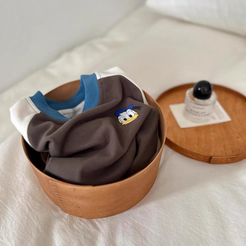 儿童长袖T恤2023秋冬新款男女童卡通撞色打底衫宝宝春秋百搭t恤潮