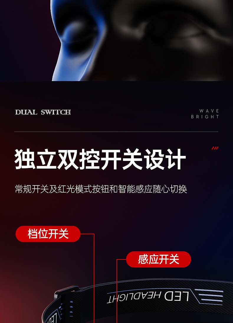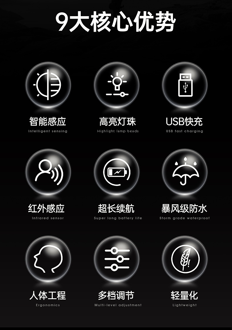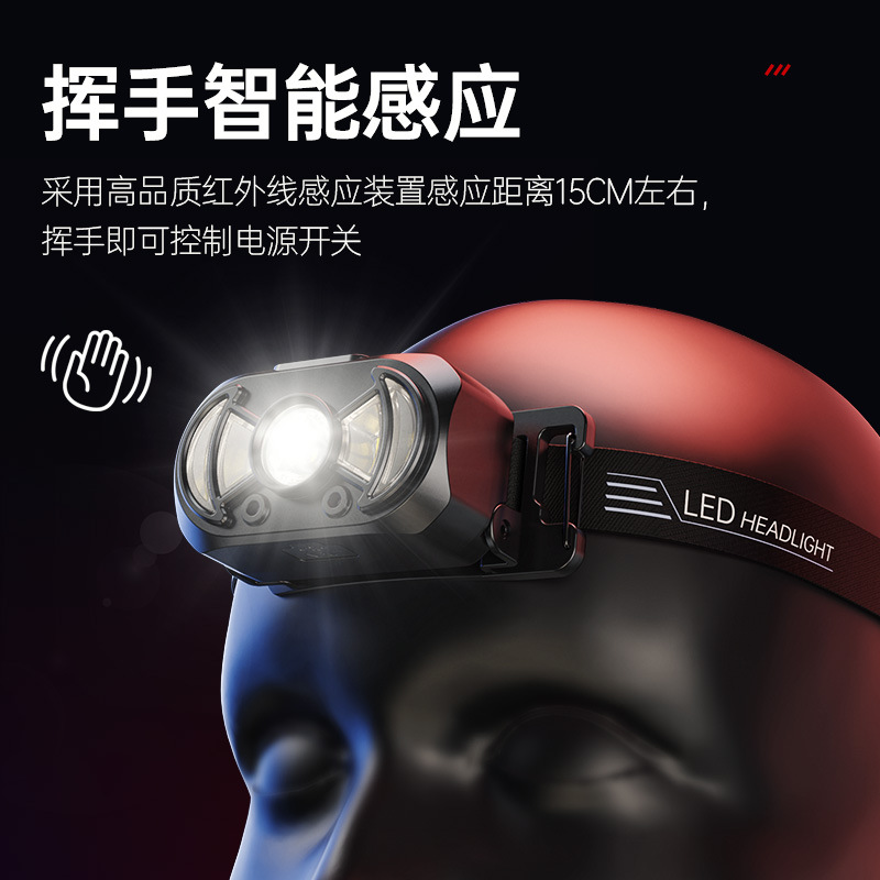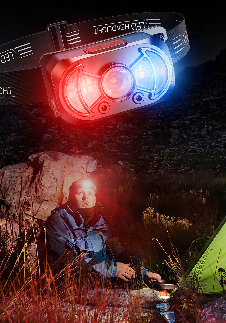 국경 지능형 유도 슈퍼 밝은 led 헤드 라이트 usb 충전 방수 긴 내구성 야외 휴대용 헤드 장착 낚시 조명