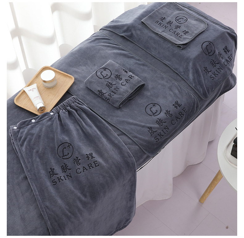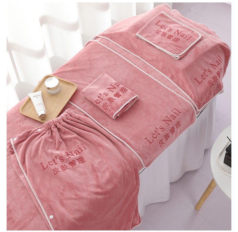 뷰티 살롱 수건 목욕 타월 다섯 조각 세트 인쇄 로고 높은 고급 섬유 터번 부드러운 흡수성 목욕 스커트 침대 수건스토어 가기