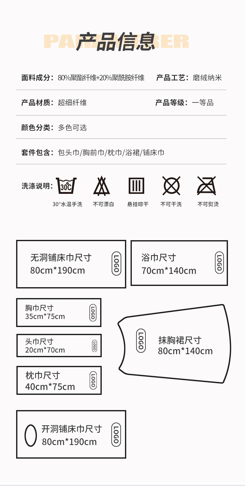 • 머리 스카프 + 가슴 수건 + 베개 수건 + 침대 수건 4종 세트