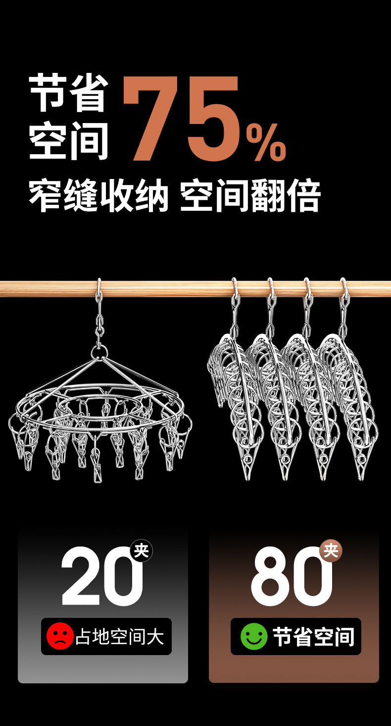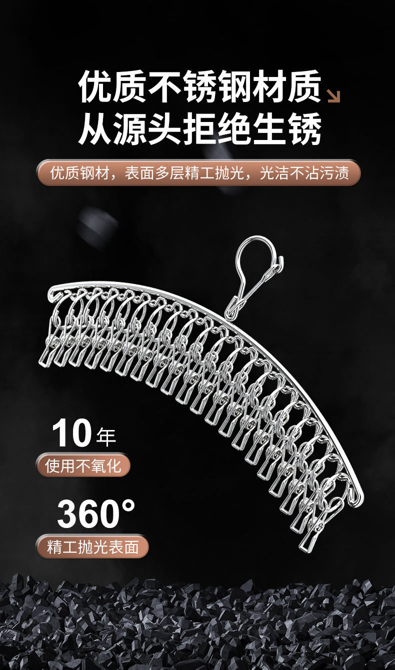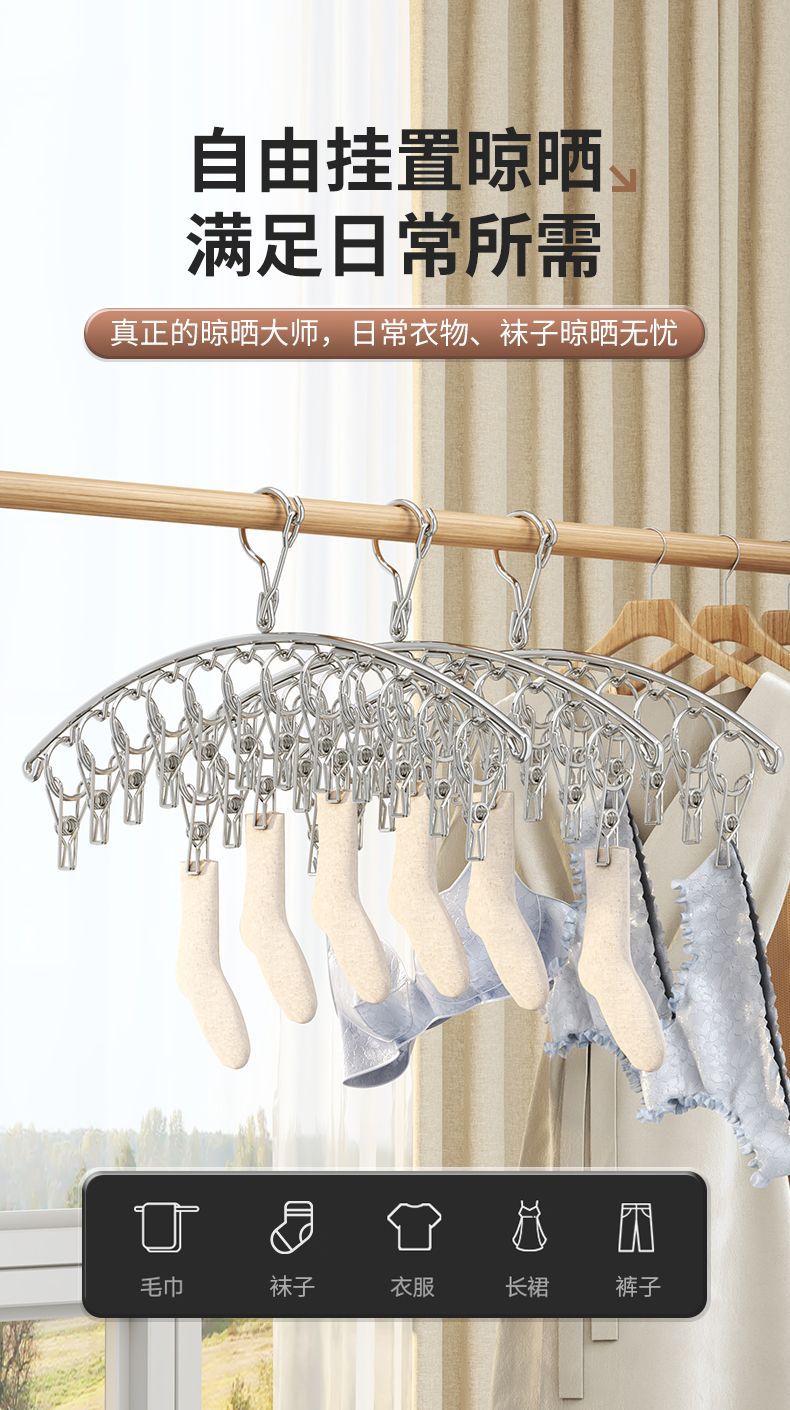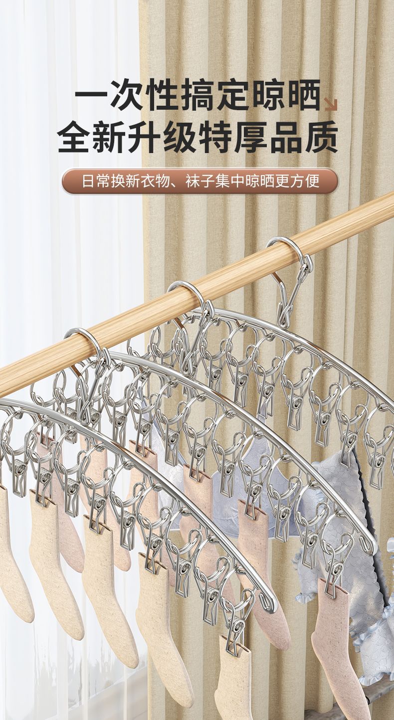 스테인레스 스틸 양말 랙 곡선 의류 방풍 일몰 양말 외부 옷걸이 아티팩트 건조 랙 멀티 클립 양말 클립 교수형 양말 랙