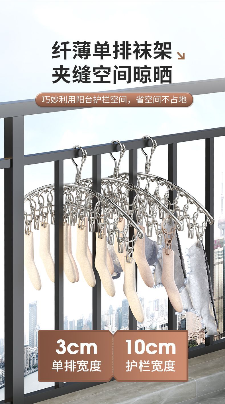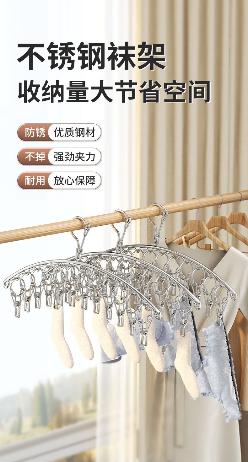 스테인레스 스틸 양말 랙 곡선 의류 방풍 일몰 양말 외부 옷걸이 아티팩트 건조 랙 멀티 클립 양말 클립 교수형 양말 랙스토어 가기
