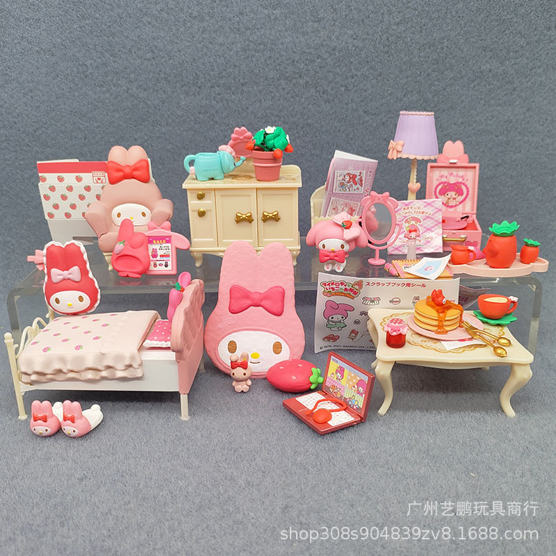 멜로디의 꿈의 집 딸기 집 DIY 장식 미니 장식품 음식 및 장난감 8 블라인드 박스 인형 뽑기 기계