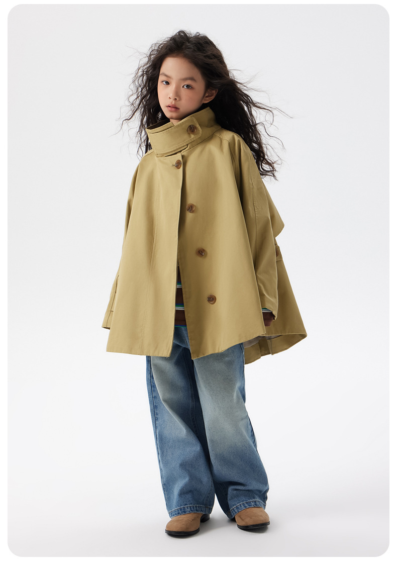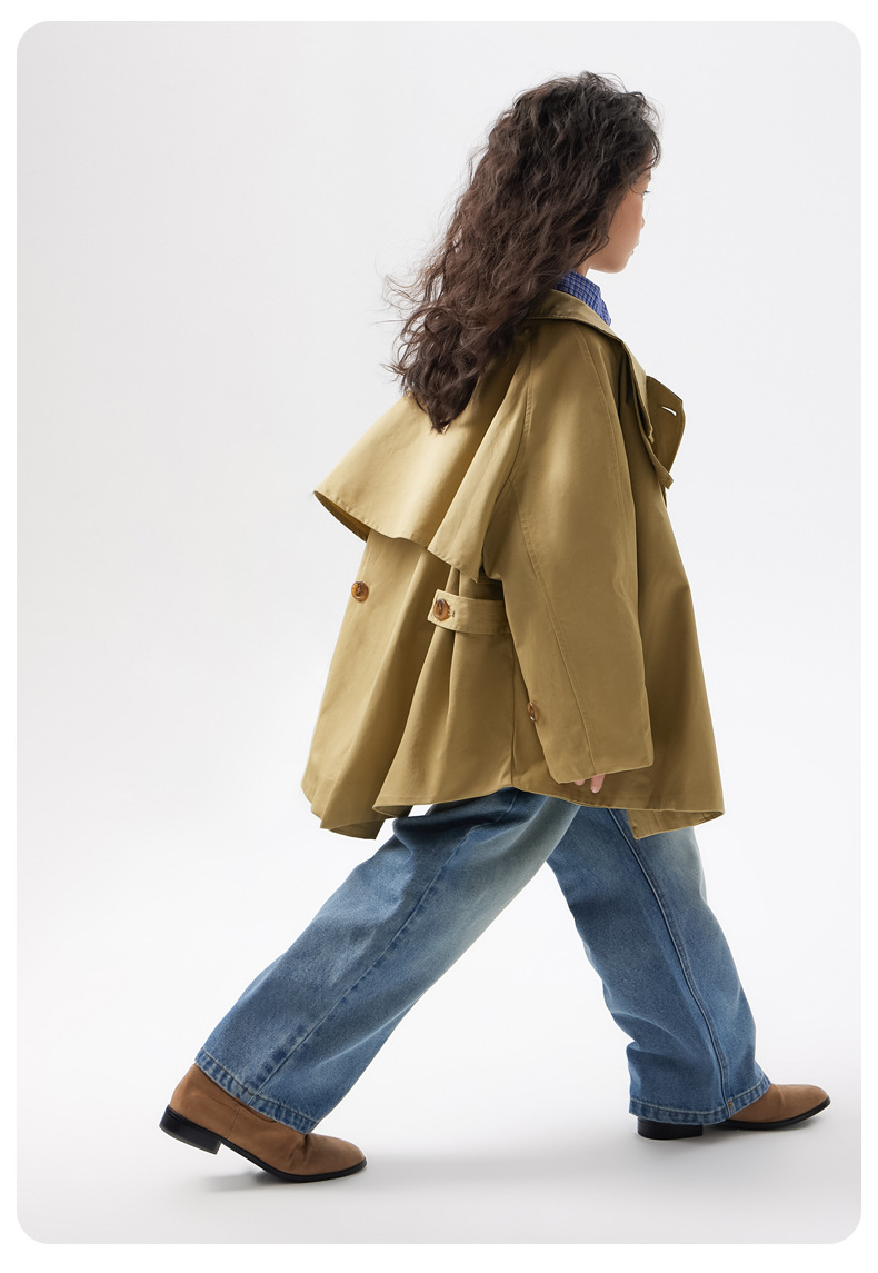 어린이 한국 스타일 바람막이 2025 가을 신상 여아용 패셔너블한 라펠 중간 길이 상의 중대형 어린이 봄 가을 코트