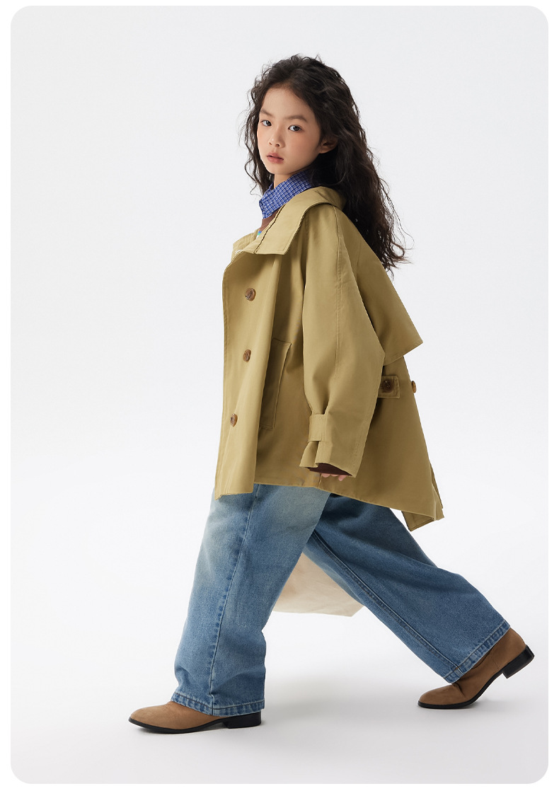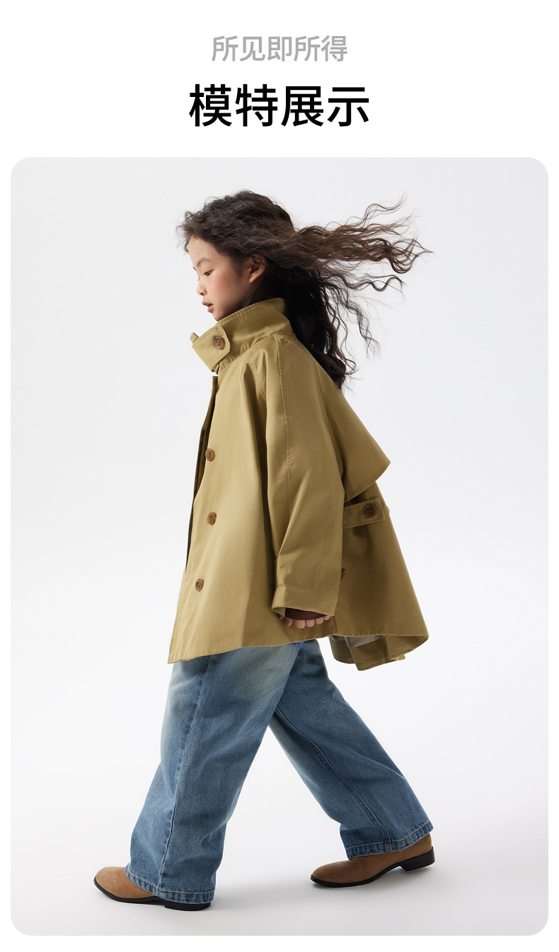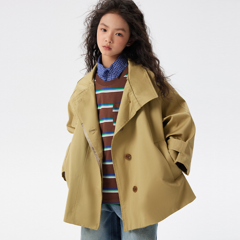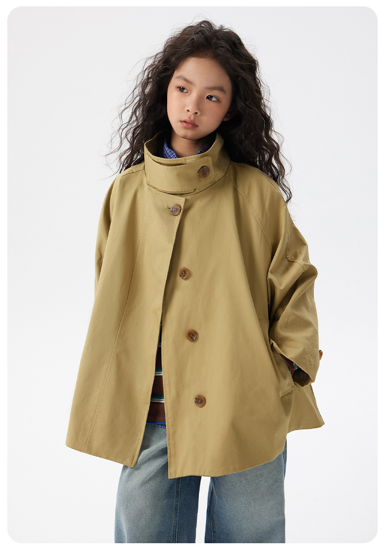어린이 한국 스타일 바람막이 2025 가을 신상 여아용 패셔너블한 라펠 중간 길이 상의 중대형 어린이 봄 가을 코트스토어 가기
