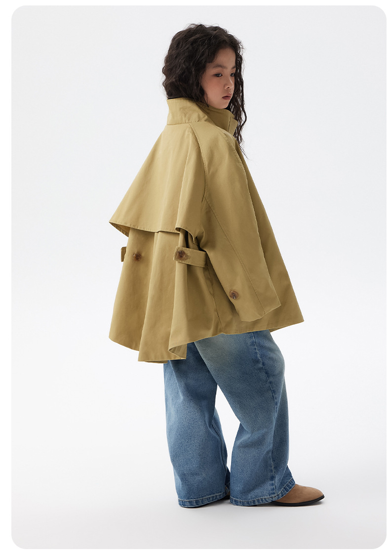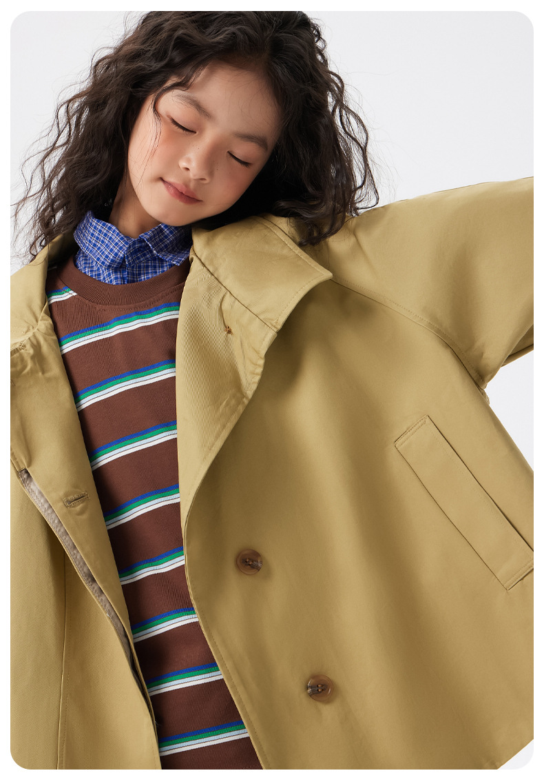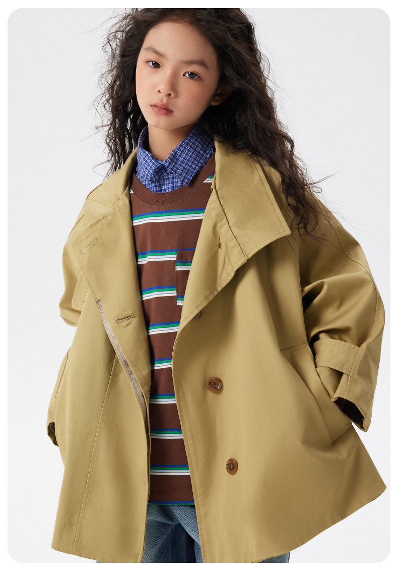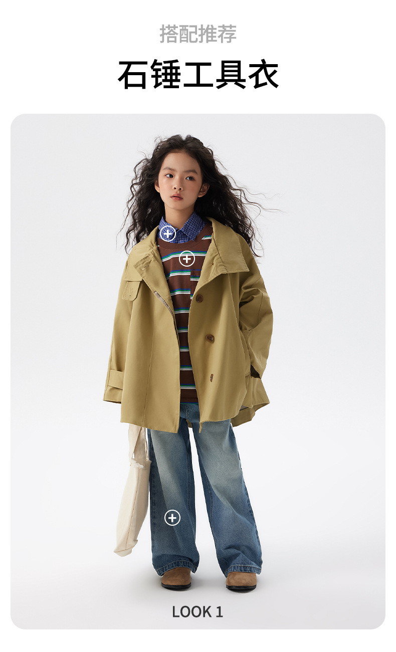 어린이 한국 스타일 바람막이 2025 가을 신상 여아용 패셔너블한 라펠 중간 길이 상의 중대형 어린이 봄 가을 코트스토어 가기