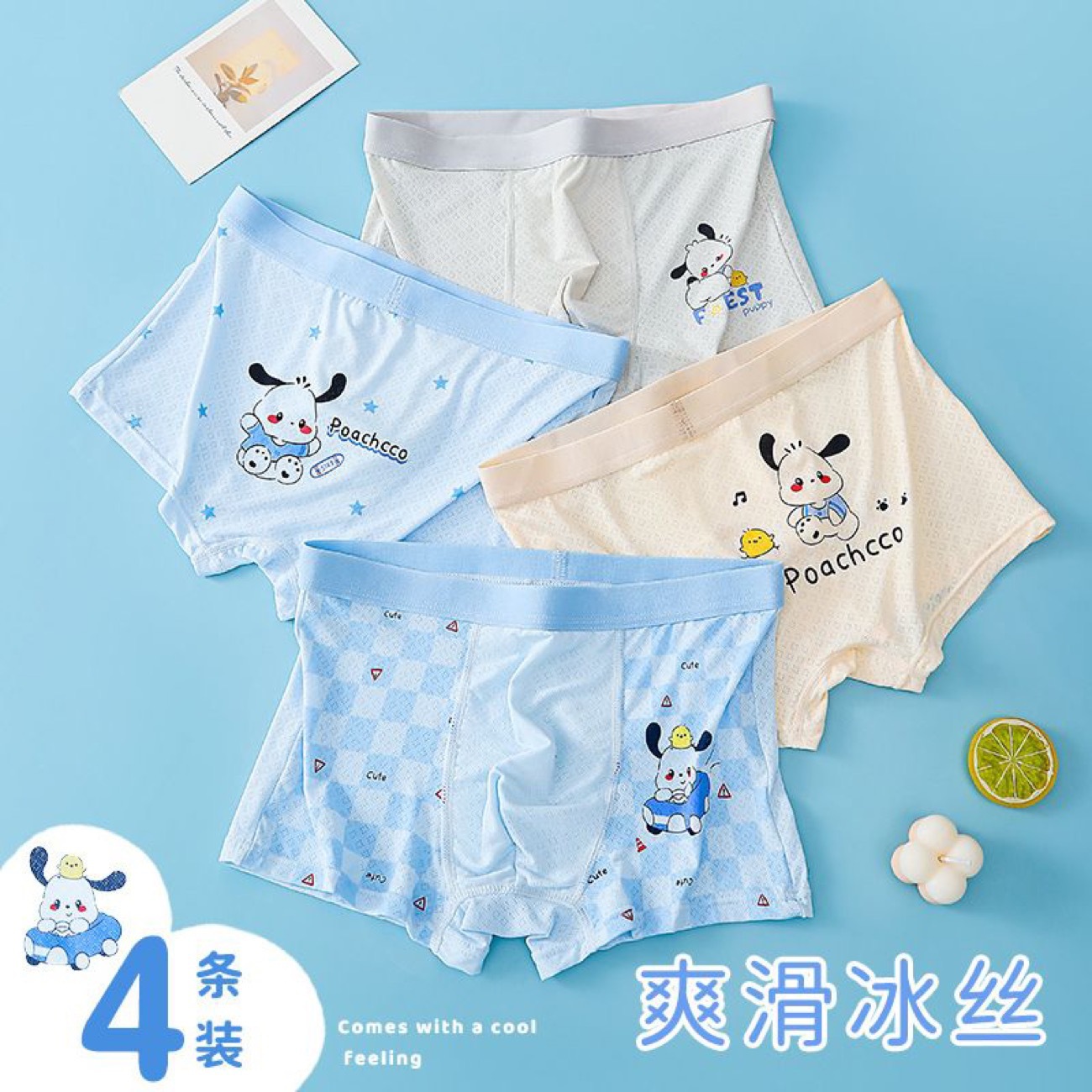 남학생 속옷 아이스 실크 어린이 속옷 7A 항균 소년 복서 여름 얇은 복서 바지 중 · 대형 어린이 및 학생스토어 가기