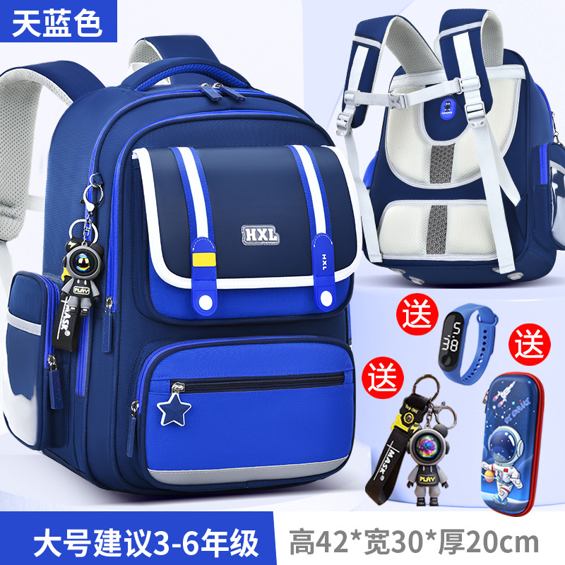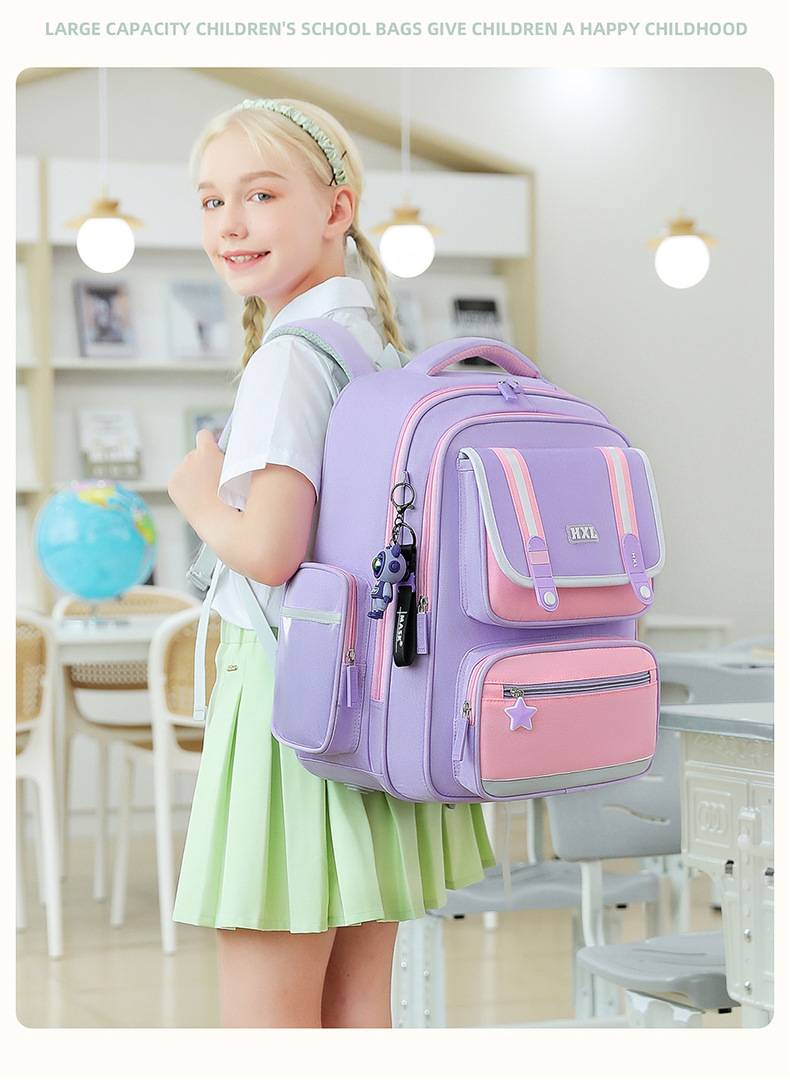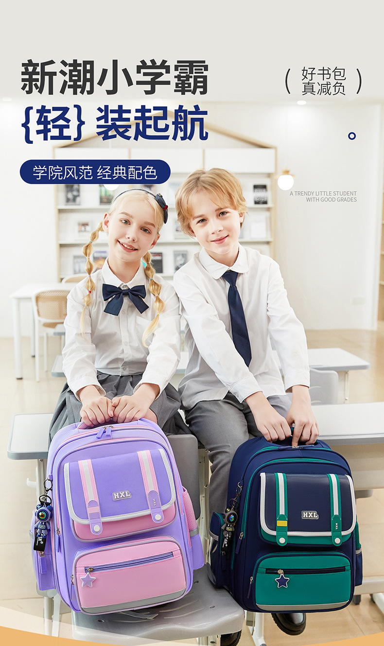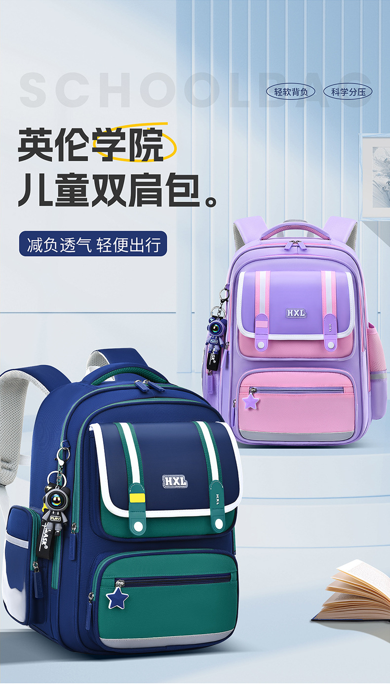2025 새로운 Schoolbag 초등학교 소년 소녀 소년 1, 2, 3-6 등급 경량 어린이 능선 보호스토어 가기