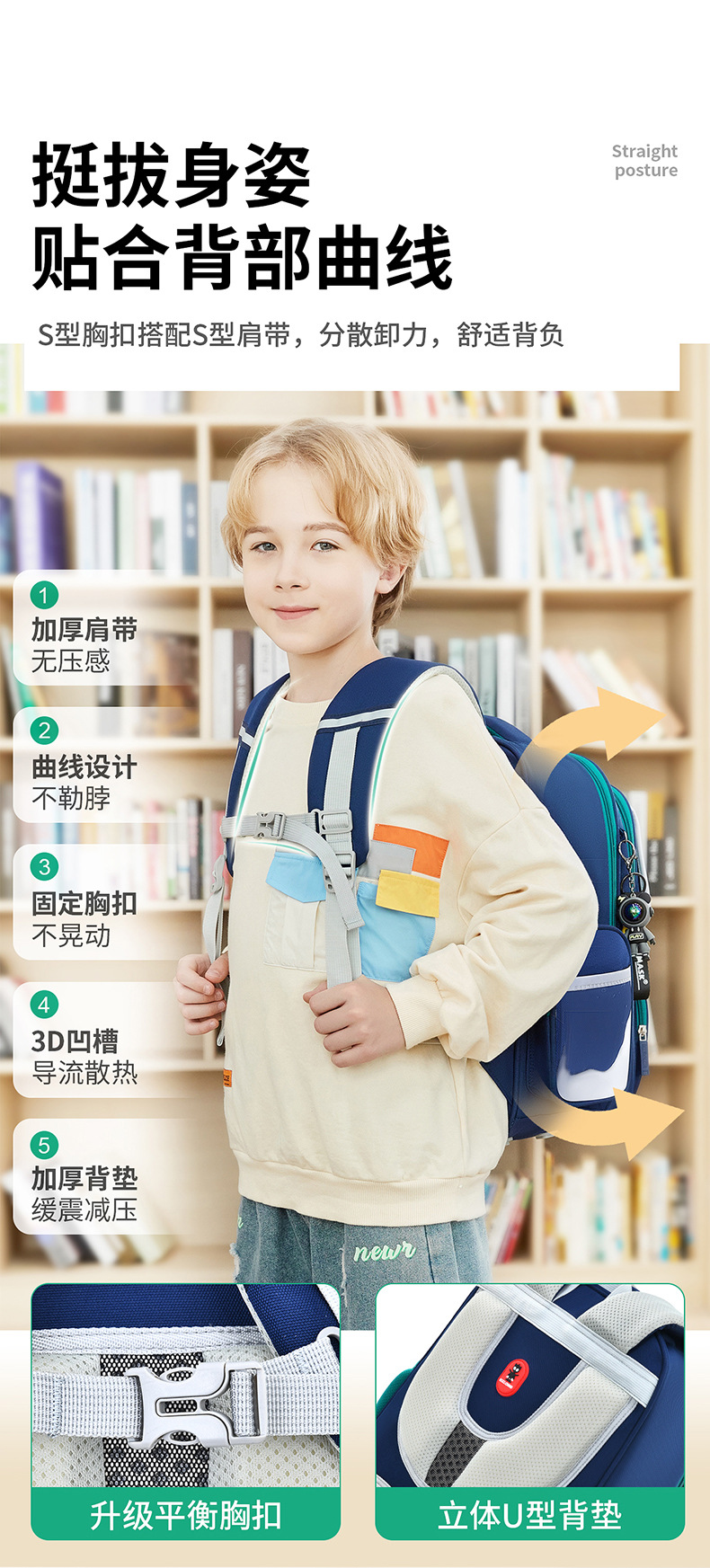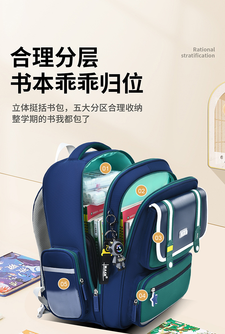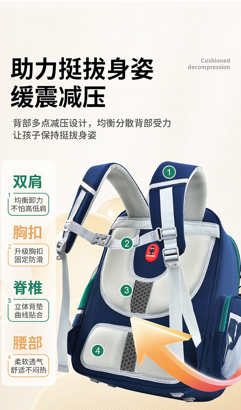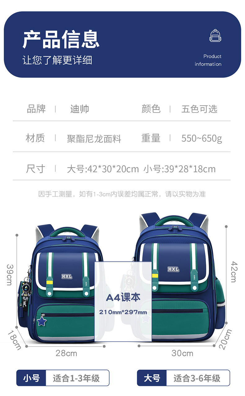 2025 새로운 Schoolbag 초등학교 소년 소녀 소년 1, 2, 3-6 등급 경량 어린이 능선 보호스토어 가기